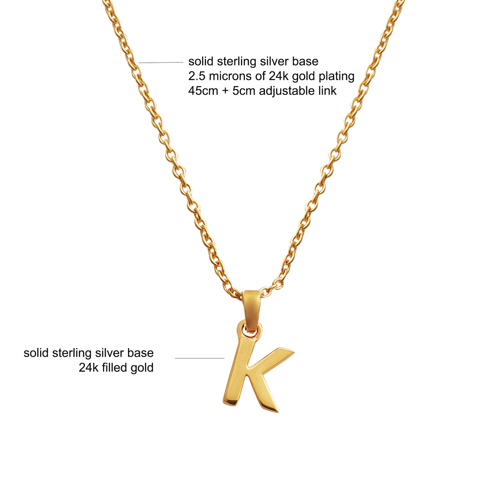 Jewellery with meaning, with quality and with a reason to keep for a lifetime. Culturesse 24K gold filled initial pendant necklaces are designed to be simple, timeless and ethical to make each piece meaningful for you and for the ones you love and care. The initial letter pendant is made of solid sterling silver with pure 24k filled gold (rolled gold) forming a much thicker gold bond to the sterling silver base, making the pendant durable for a lifetime, and radiating a luxurious gold shine. The necklace is made of solid sterling silver with 2.5 microns of pure 24k gold plating. Each necklace comes with a 5cm adjustable link for more flexible styling options. Perfect for women and girls of all ages. Suitable for all personal styles. Hypoallergenic, nickel, cadmium and lead free. Allergy free. 100% Skin safe.