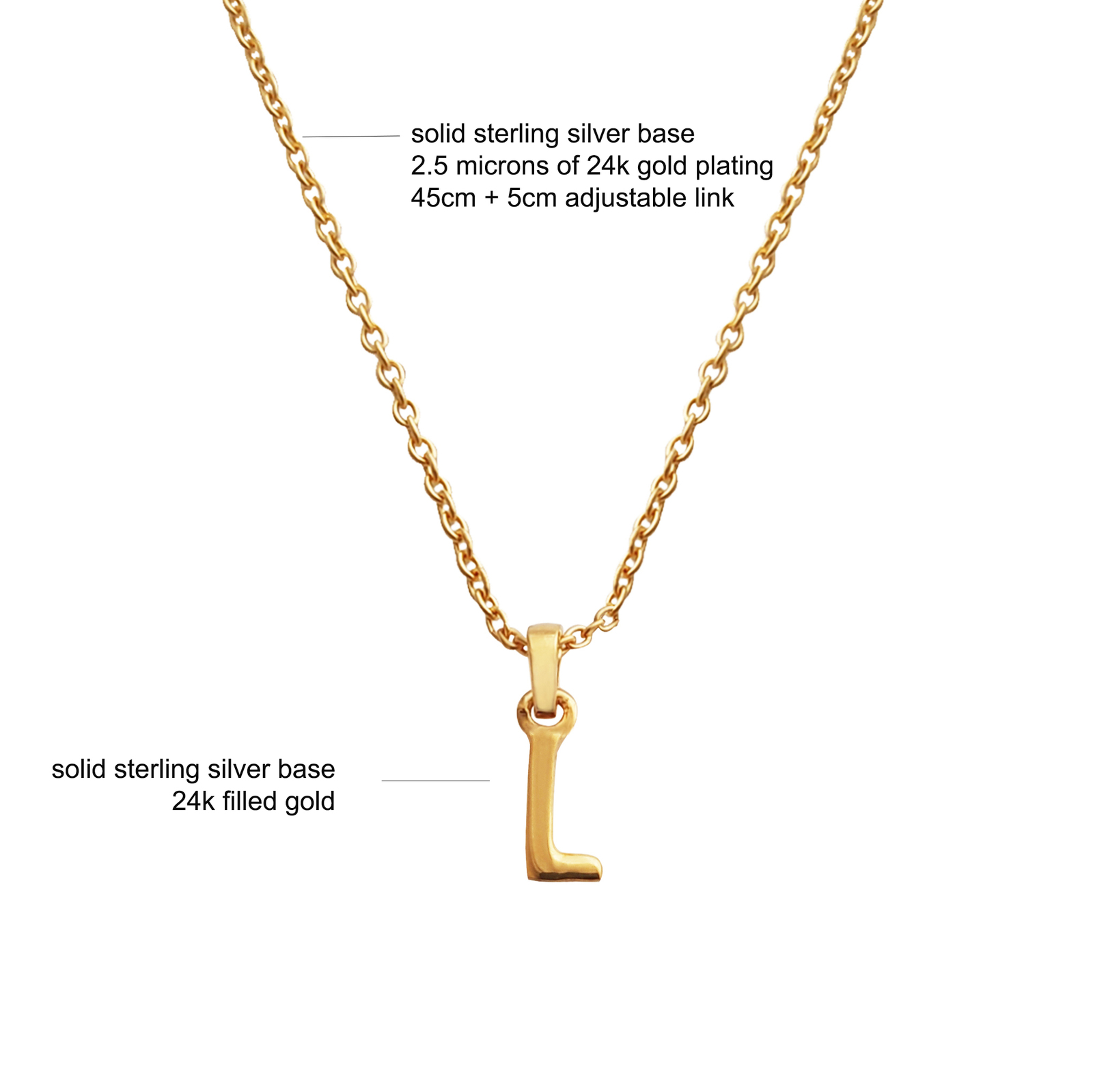Jewellery with meaning, with quality and with a reason to keep for a lifetime. Culturesse 24K gold filled initial pendant necklaces are designed to be simple, timeless and ethical to make each piece meaningful for you and for the ones you love and care. The initial letter pendant is made of solid sterling silver with pure 24k filled gold (rolled gold) forming a much thicker gold bond to the sterling silver base, making the pendant durable for a lifetime, and radiating a luxurious gold shine. The necklace is made of solid sterling silver with 2.5 microns of pure 24k gold plating. Each necklace comes with a 5cm adjustable link for more flexible styling options. Perfect for women and girls of all ages. Suitable for all personal styles. Hypoallergenic, nickel, cadmium and lead free. Allergy free. 100% Skin safe.