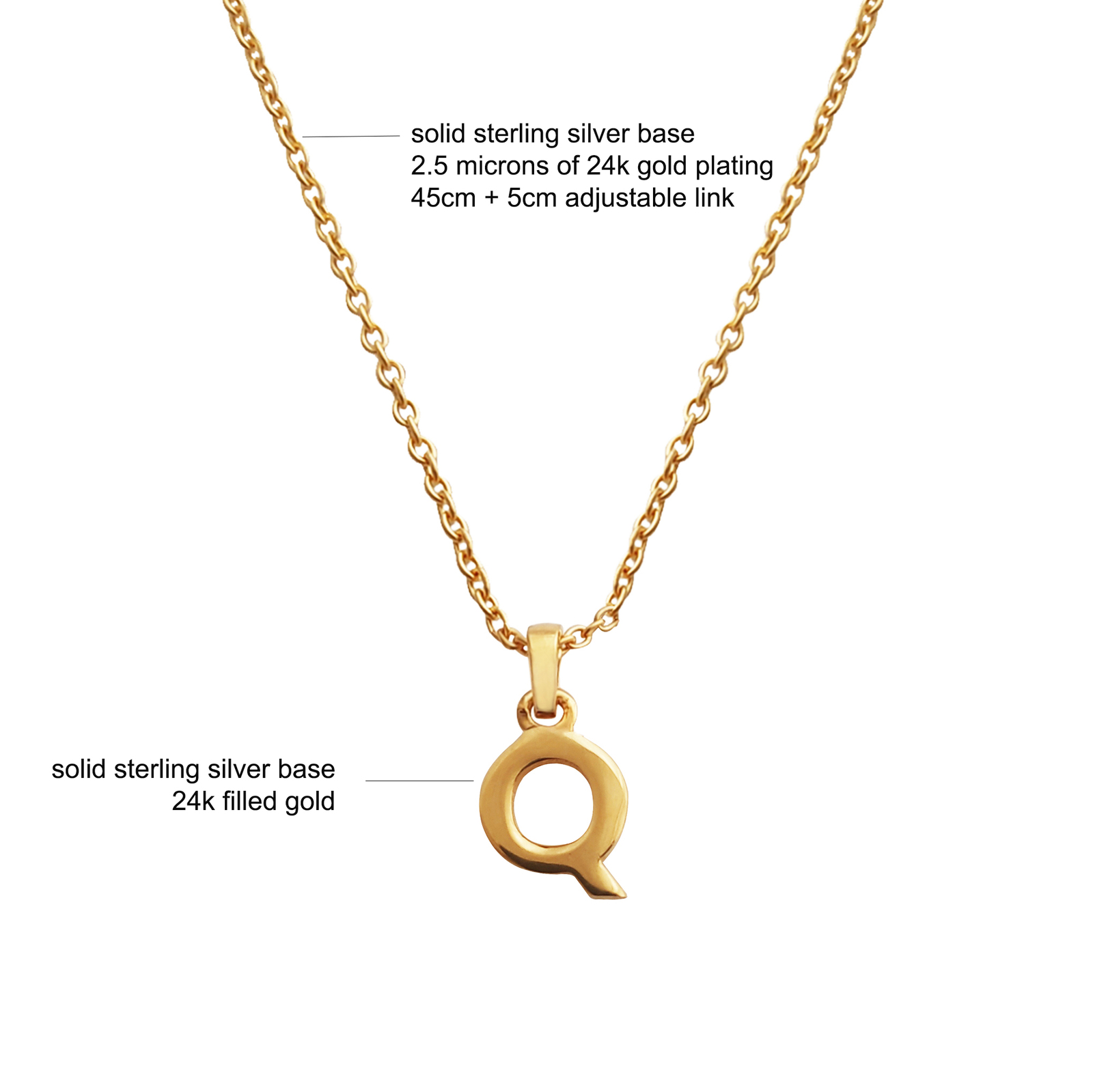 Jewellery with meaning, with quality and with a reason to keep for a lifetime. Culturesse 24K gold filled initial pendant necklaces are designed to be simple, timeless and ethical to make each piece meaningful for you and for the ones you love and care. The initial letter pendant is made of solid sterling silver with pure 24k filled gold (rolled gold) forming a much thicker gold bond to the sterling silver base, making the pendant durable for a lifetime, and radiating a luxurious gold shine. The necklace is made of solid sterling silver with 2.5 microns of pure 24k gold plating. Each necklace comes with a 5cm adjustable link for more flexible styling options. Perfect for women and girls of all ages. Suitable for all personal styles. Hypoallergenic, nickel, cadmium and lead free. Allergy free. 100% Skin safe.