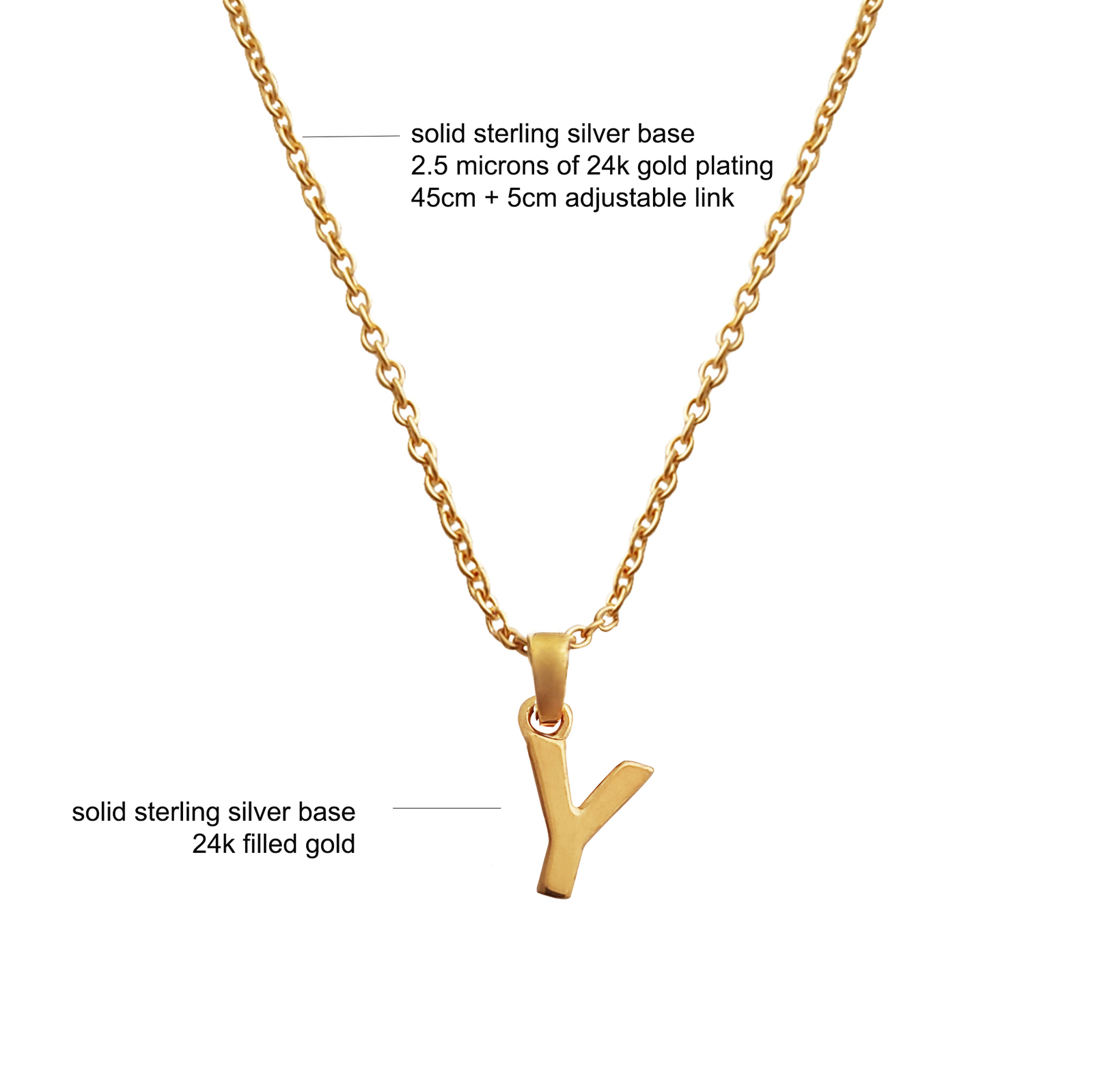24K Gold Filled Initial Y Pendant Necklace