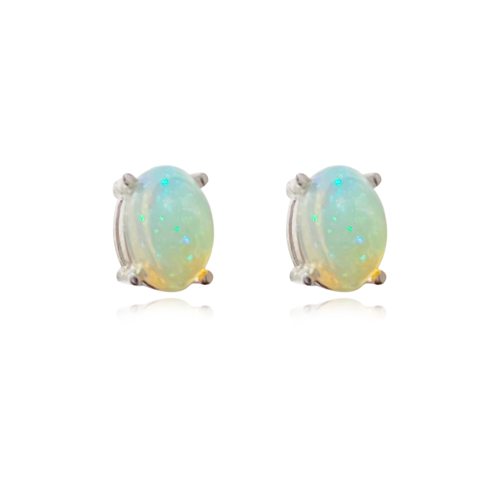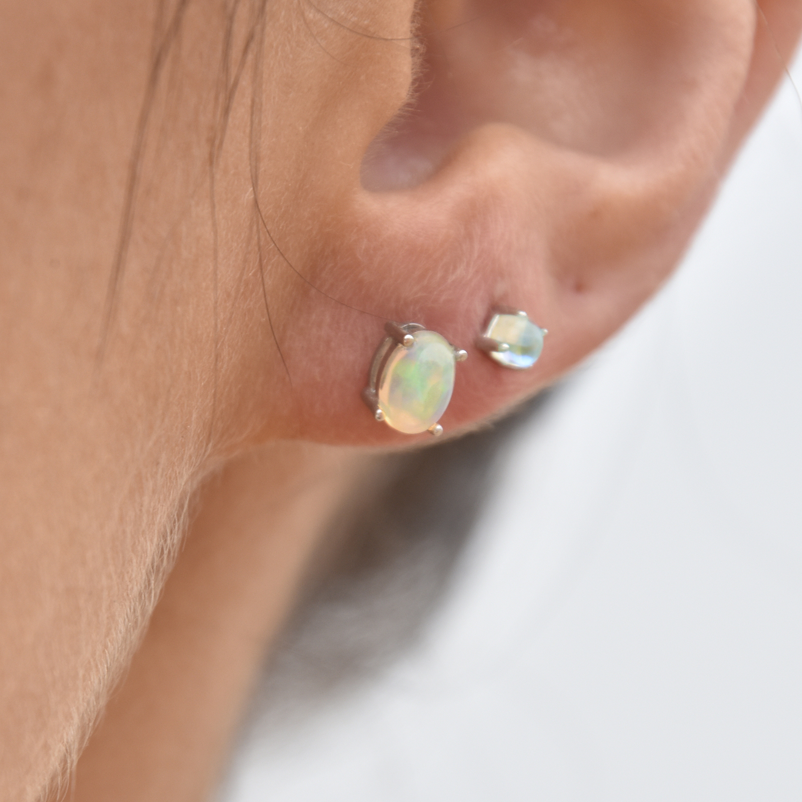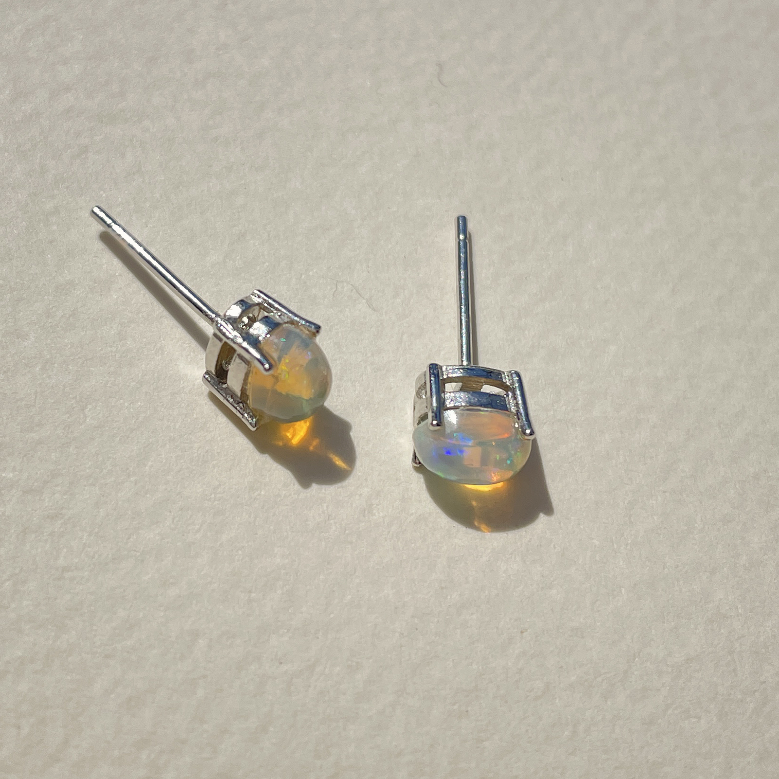 Elegant, timeless and always appropriate. Introducing Lumi Solid Opal Stud Earrings - a classic style opal earring for your elevated everyday style. This design features solid natural opals with a mixture of honey and glacier tones when catching the light. Watch the brilliant hues and colours dance as the opal catches the sunlight. The opals are embedded in a sturdy claw setting. The earrings are made of solid sterling silver for hypoallergenic wear. Suitable for women and girls of all ages. Perfect for dainty, chic, feminine, minimalist, earring layering, smart casual, causal, everyday styles and more. Hypoallergenic, nickel, cadmium and lead free.
