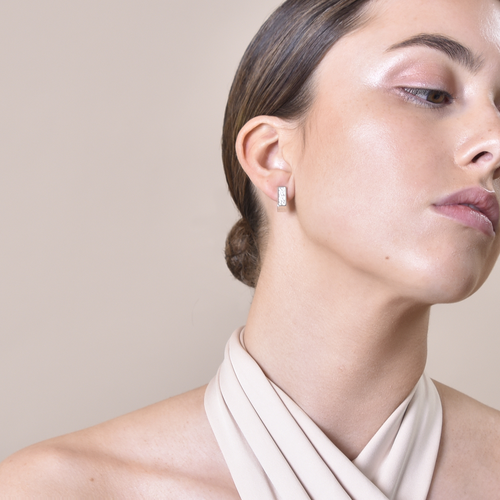 Blending geometry and textures for your everyday earring style. Introducing Adelyn Art Deco Textured Huggie Earrings (Silver) - a contemporary deco style ear art for your elevated everyday styling. This design features rectangular shaped vertical huggie earrings with stippled texture on front and back. The earrings are made of solid sterling silver and brilliant white rhodium plating (anti-tarnishing) for for hypoallergenic and durable wear, as well as a brighter silver shine. They are of a comfortable weight for wearing all day and suitable for women and girls of all ages and all personal styles. Hypoallergenic, nickel, cadmium and lead free.