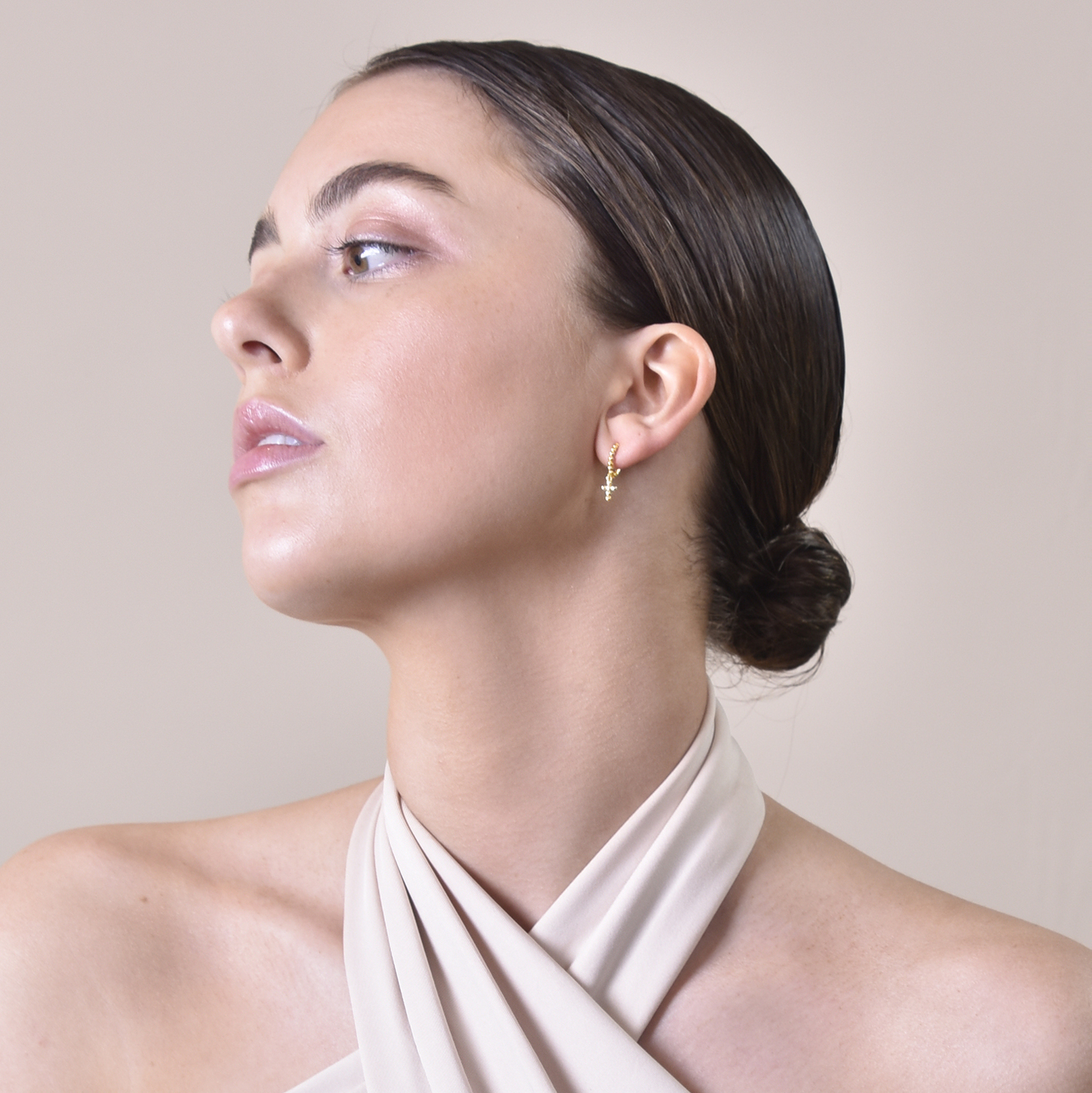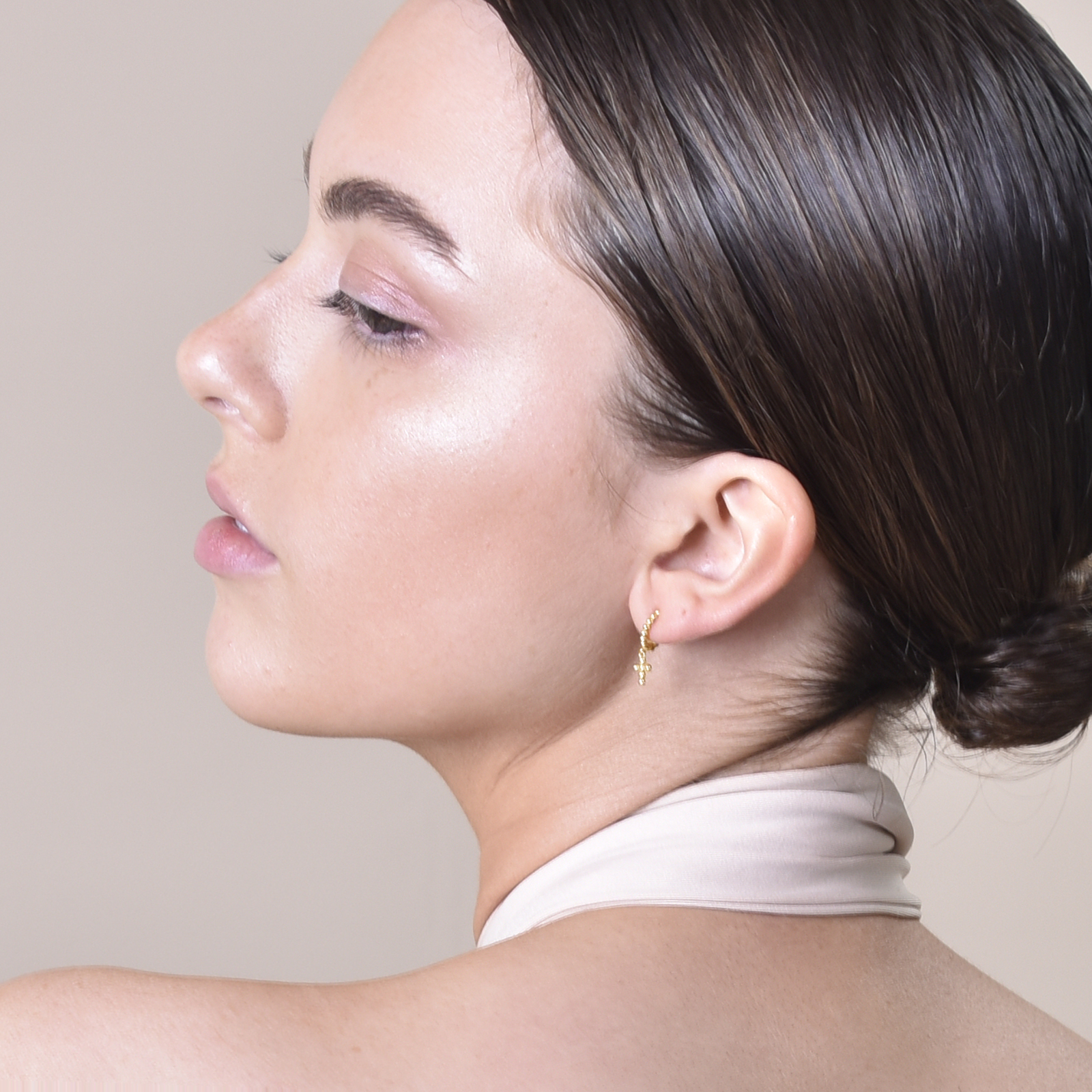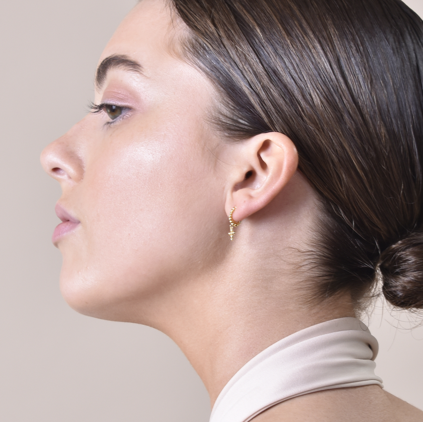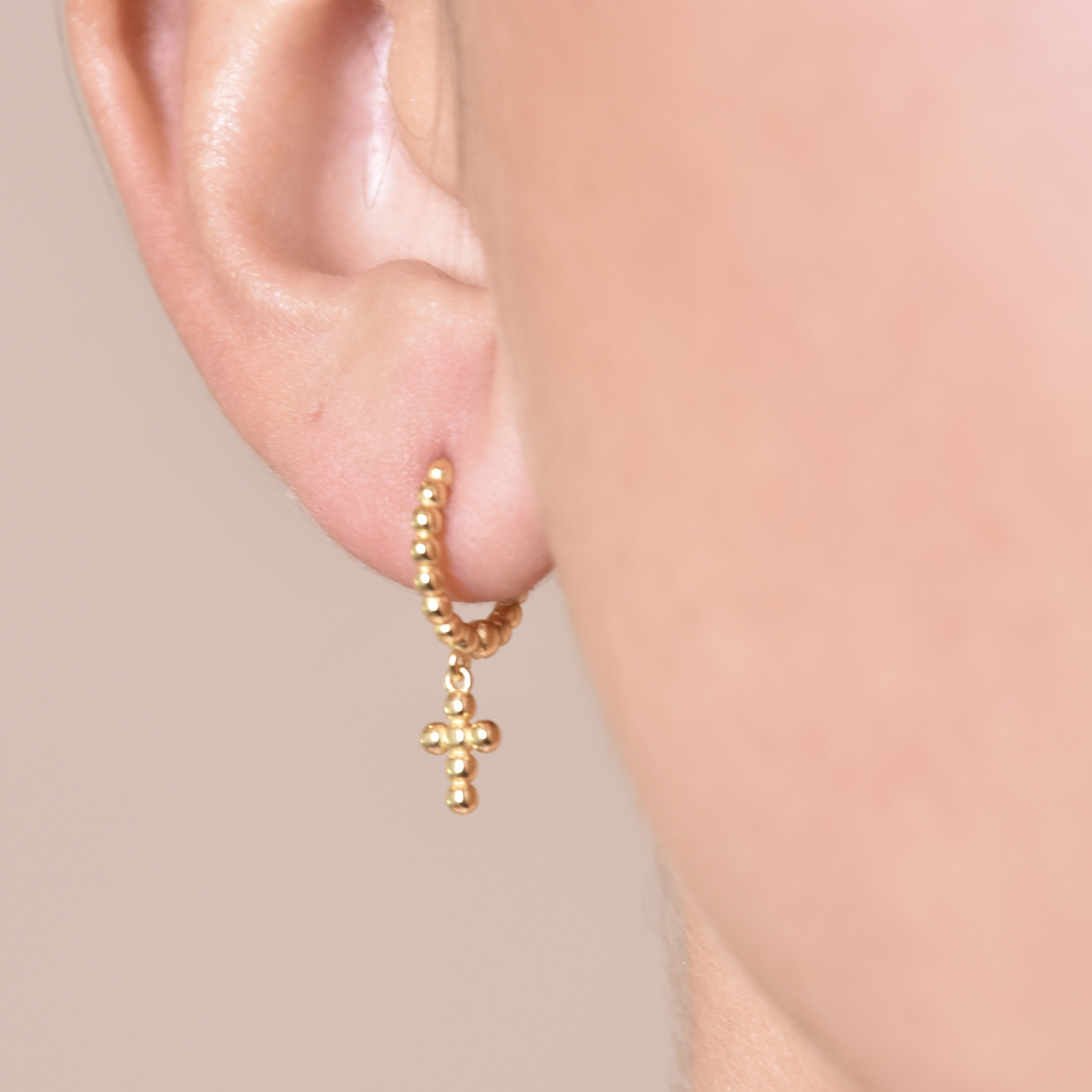 Bringing a chic cuteness to religious style jewellery. Introducing Adina Beaded Dainty Cross Drop Earrings (Gold Vermeil) - a dainty and refined ear love for your effortless everyday styling. This design features beaded style hoops and cross drops made of solid sterling silver with 2.5 microns of 18K gold plating (to Gold Vermeil Jewellery Standards). The earrings are smoothly polished with a shiny surface. They have a very comfortable weight for all day wearing. Perfect for modern, dainty, girly, chic, punk, earring layering, earring mismatching, casual, everyday styles and more. Also suitable for teens, kids and for unisex wear. Hypoallergenic, nickel, cadmium and lead free.