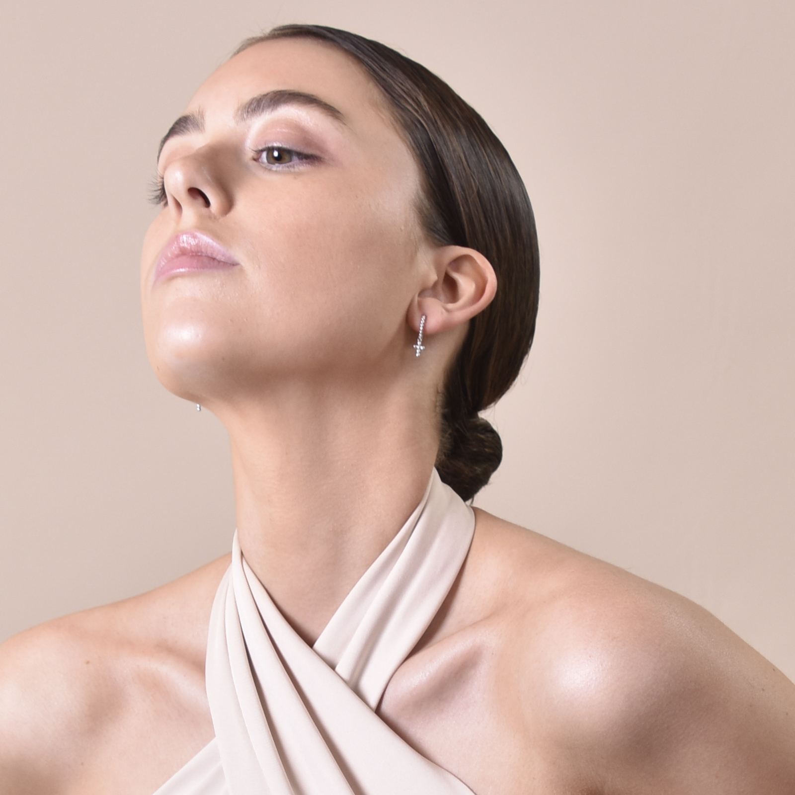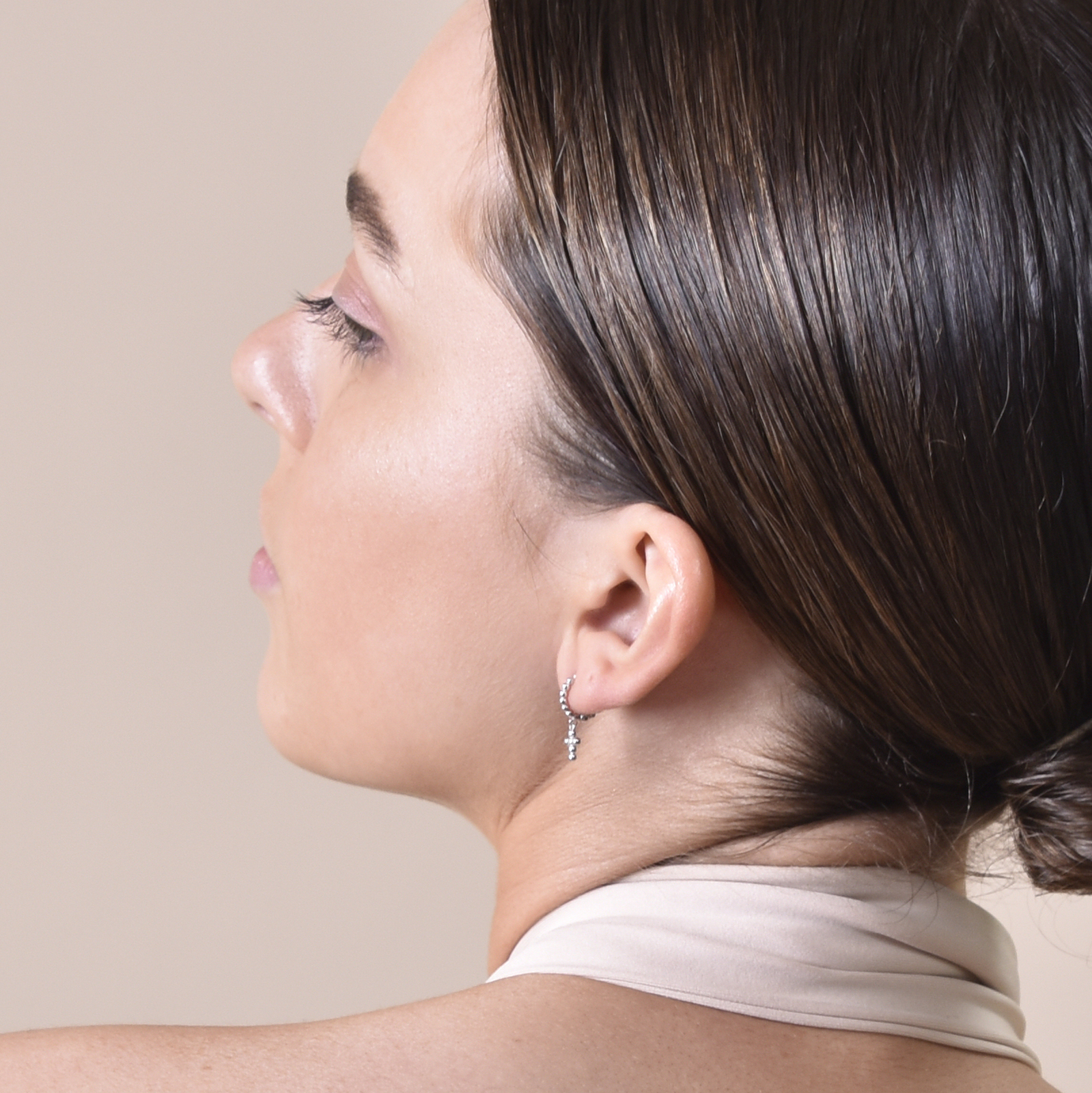 Bringing a chic cuteness to religious style jewellery. Introducing Adina Beaded Dainty Cross Drop Earrings (Silver) - a dainty and refined ear love for your effortless everyday styling. This design features beaded style hoops and cross drops made of solid sterling silver with quality rhodium plating for greater durability. The earrings are smoothly polished with a shiny surface. They have a very comfortable weight for all day wearing. Perfect for modern, dainty, girly, chic, punk, earring layering, earring mismatching, casual, everyday styles and more. Also suitable for teens, kids and for unisex wear. Hypoallergenic, nickel, cadmium and lead free.