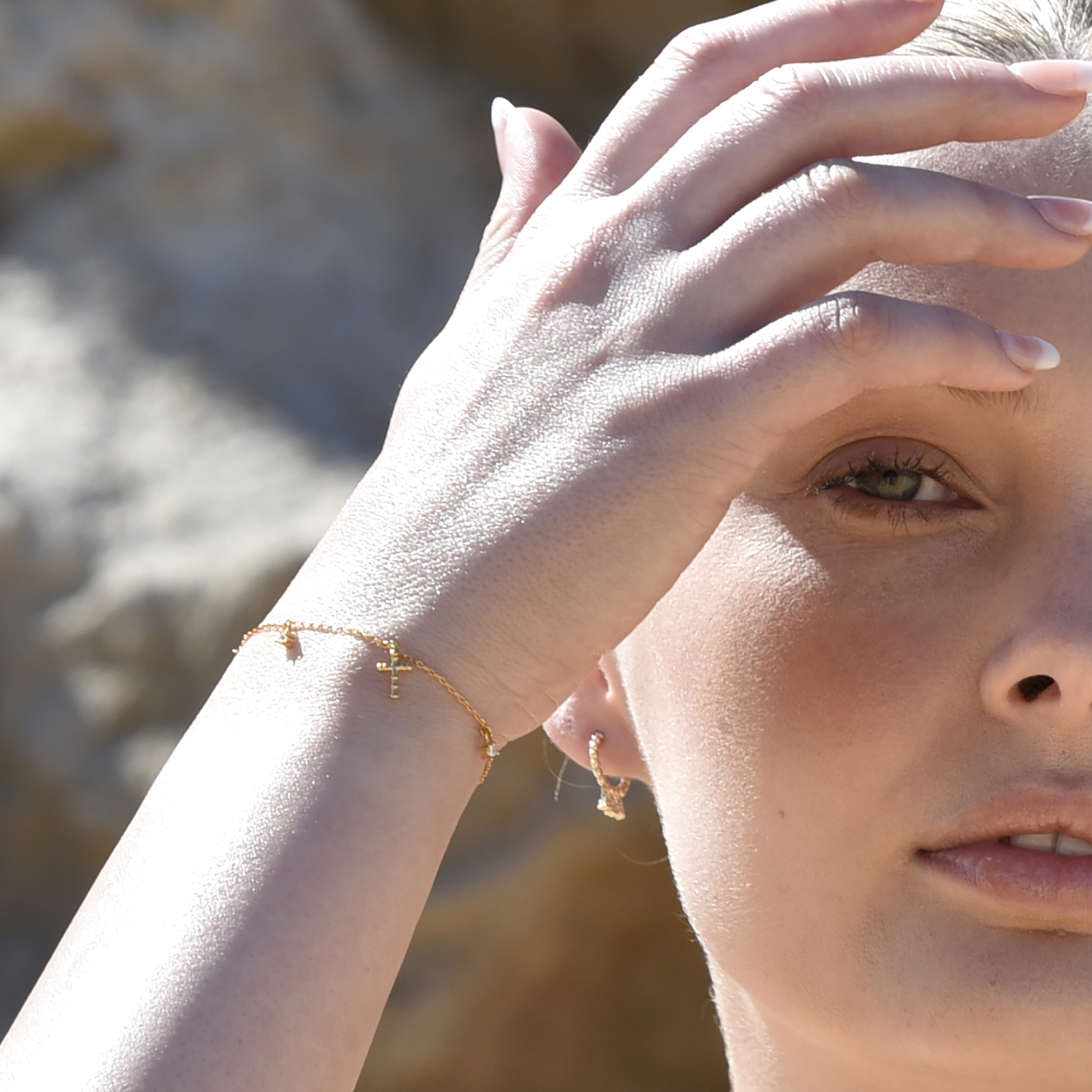 Chic, refined and detail rich. Introducing Adina Fine Diamante Cross Charm Bracelet (24K Gold) - a delicate wrist love exuding religious virtues. This design features a fine gold chain with 3 Austrian zircons and 2 cross charms evenly attached apart. This bracelet and the charms are made in solid sterling silver with 2 microns of 24K gold plating (with a richer and deeper gold shine) to ensure hypoallergenic wear and durability. This bracelet is 19cm long including a 3.5cm adjustable link to suit your ideal fit. Perfect for modern, retro, delicate, fine, girly, religious, smart casual, casual, everyday styles and more. Perfect for wearing on its own or layering with other bracelets. Hypoallergenic, nickel, cadmium and lead free.