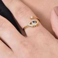 Fine protection with state-of-the-art details. Introducing Adiva Artisan Evil Eye Wrap Open Ring (Gold) - new love added to our artisan evil eye collection. This design features a solid open ring band with an Austrian cubic zircon embellished evil eye and a single prong setting zircon. This ring is made of solid sterling silver with 18ct gold plating, smoothly polished to premium jewellery standards. A timeless and classic evil eye style finger love for you and your loved ones. This ring is also fully adjustable to suit individual fitting preference. Suitable for evil eye lovers of all ages. Hypoallergenic, nickel, lead, and cadmium free.
