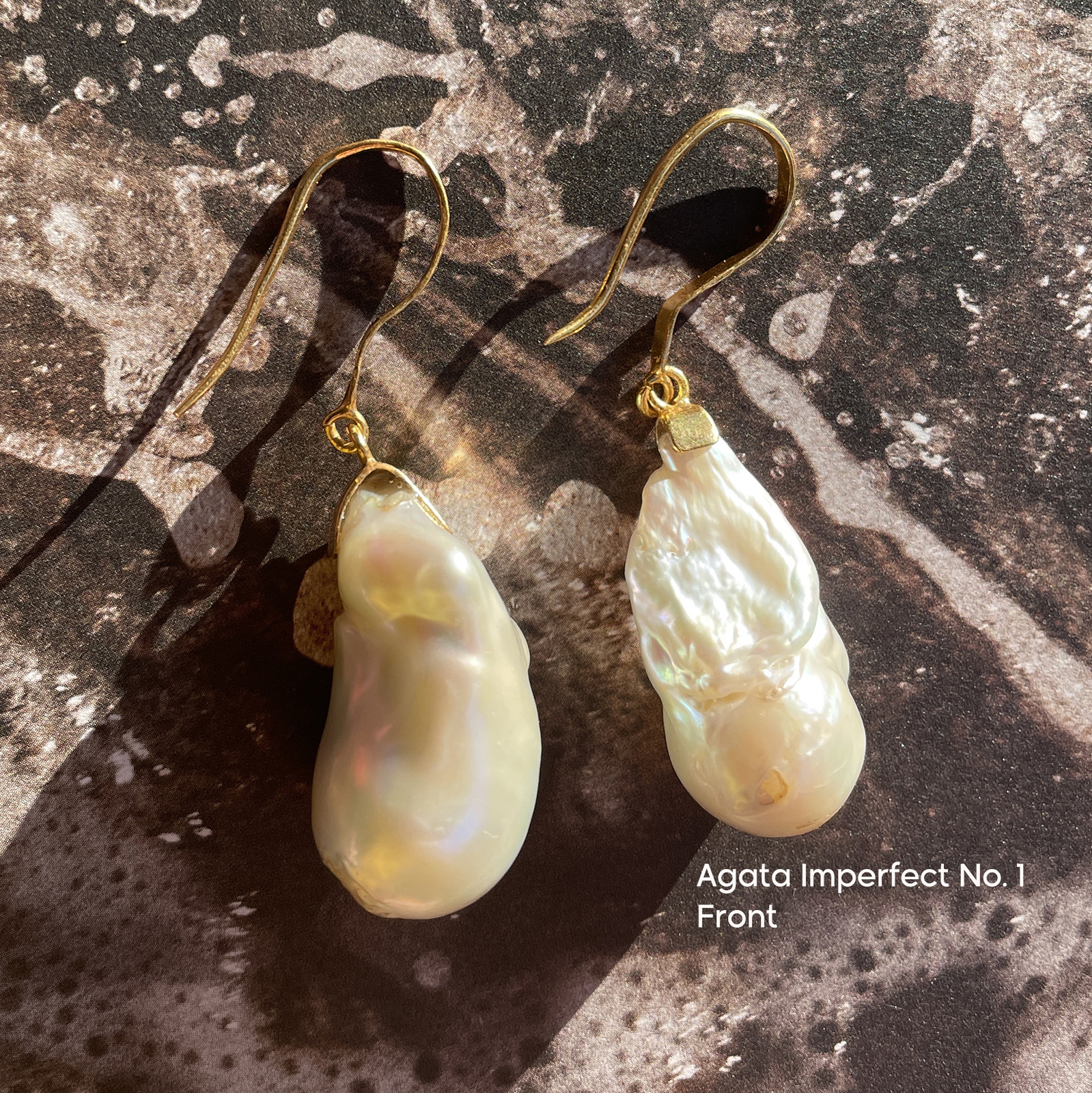 Pearl extravagance enriched with a raw elegance. Introducing Agata Baroque Pearl Drop Earrings - an artisan handcrafted natural pearl beauty ethically made to last a lifetime. This deign features large natural baroque pearls of a raw shape and high lustre. The earring hooks are made in solid sterling silver with 2.5 microns of 24K gold plating for hypoallergenic and enduring wear. The authentic shape and style of each pearl means that your selection will be absolutely unique and not identical. Perfect for pearl lovers and uniqueness seekers. Suitable for modern, retro, bridal, wedding, high fashion, dressy, coastal, chic, earring layering, smart casual styles and more. Hypoallergenic, nickel, lead, and cadmium free.