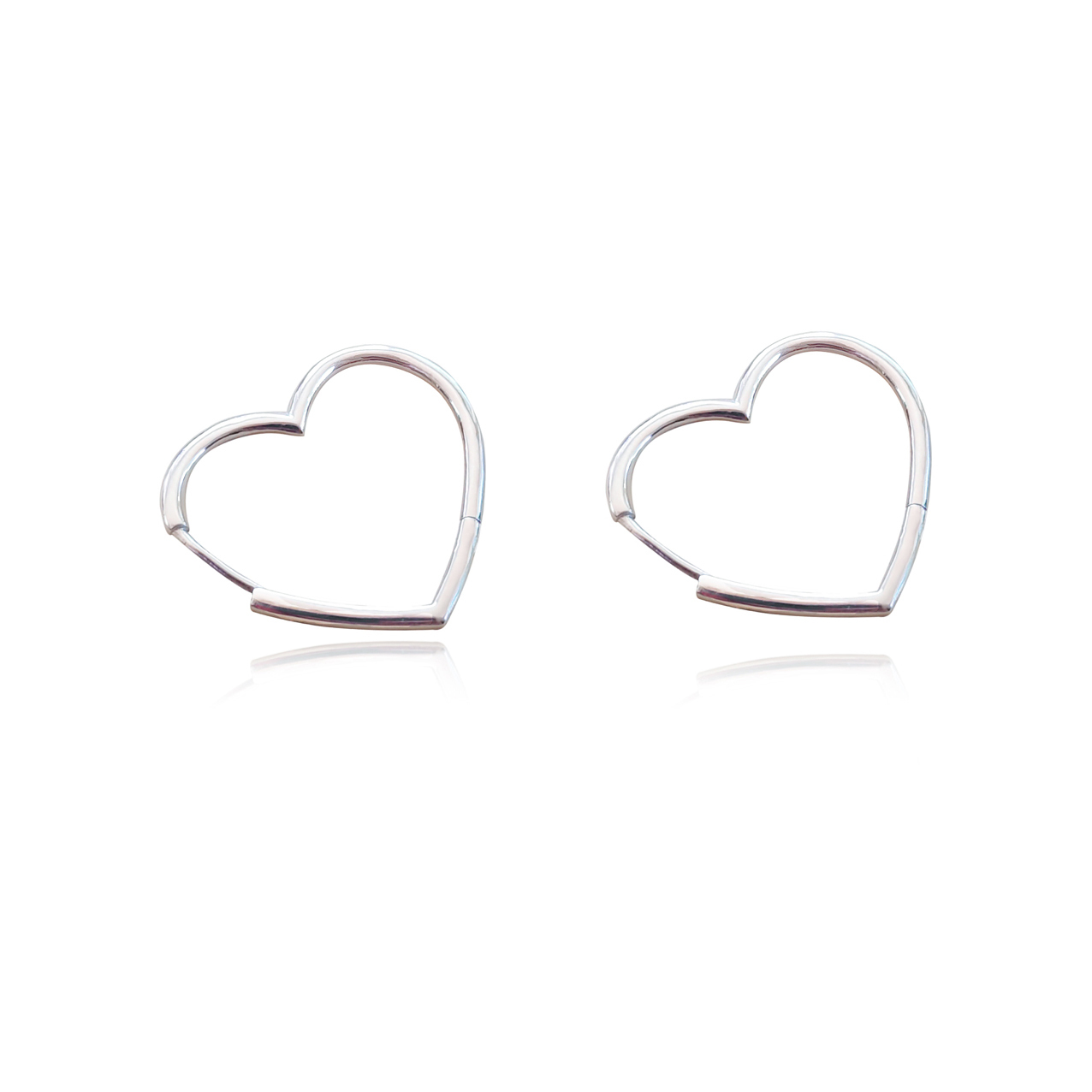 Hearted silver elegance with a contemporary simplicity. Introducing Aimee Open Heart Earrings — a classy and timeless hoop statement to add a romantic aura to your styling. This adorable love heart design is crafted in solid sterling silver (nickel free) with a mirror-like polish, giving the pieces a subtle and soft silver shine. An ethical and enduring piece for modern, chic, artsy, simple, smart casual, creative, multiple earring layering styles and more. Hypoallergenic, nickel, cadmium and lead free.