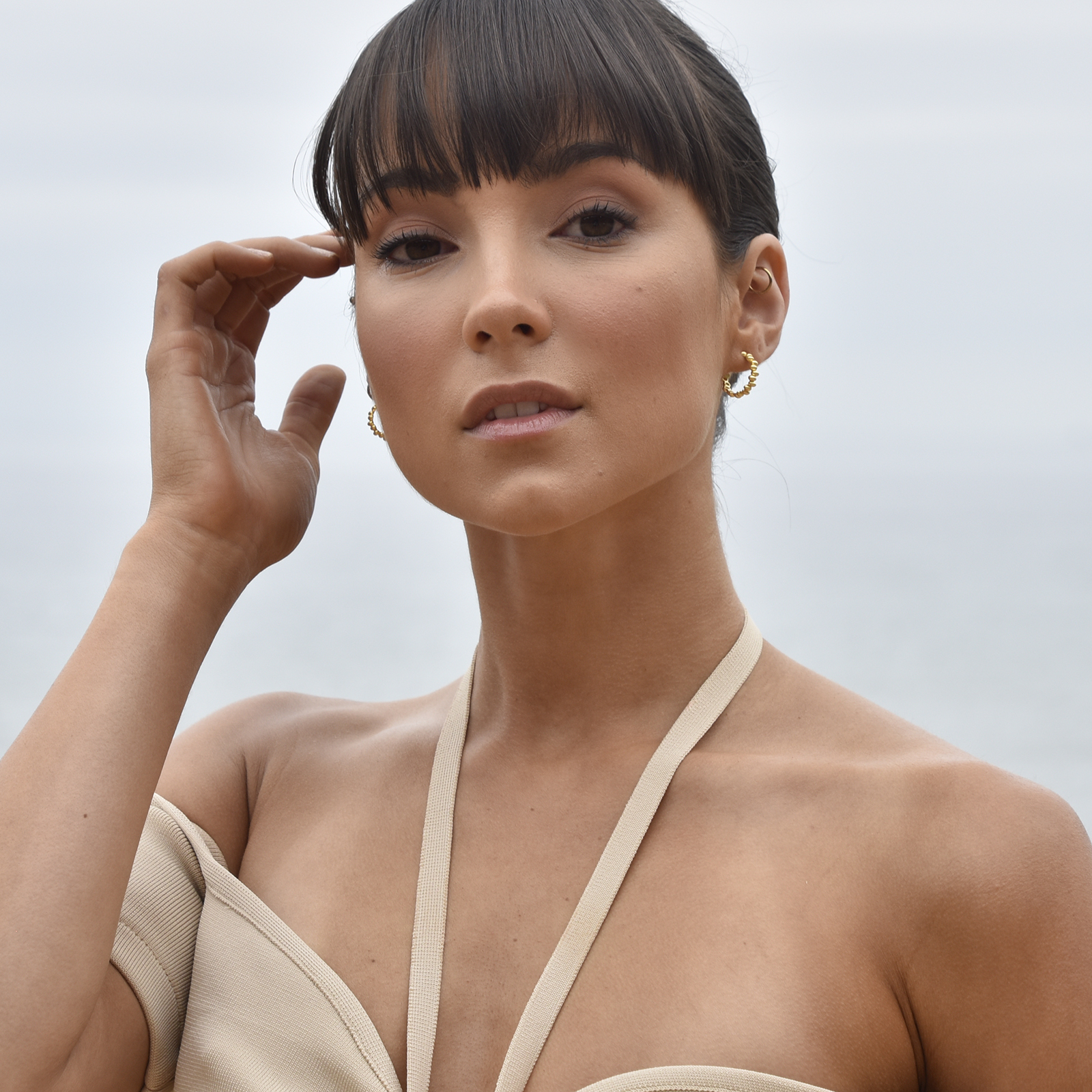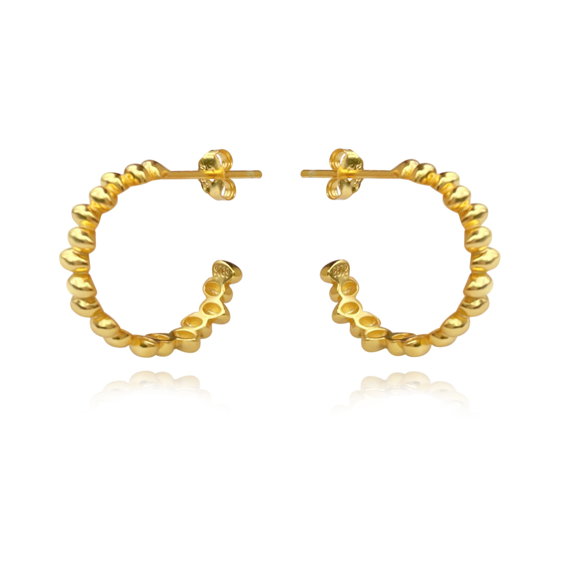 Delicate, unique and chic. Introducing Aisling Beaded C Hoop Earrings (Gold Vermeil) - a contemporary artsy style ear love adding a subtle uniqueness to your everyday styling. This design features asymmetric beaded style C hoops with a smooth and shiny polish. The earrings are made in solid sterling silver with 2.5 microns of 18K gold plating (to Gold Vermeil Jewellery Standard) for hypoallergenic and enduring wear. They are of a comfortable weight to wear all day. Perfect for modern, retro, chic, trendy, earring layering, smart casual, casual, everyday styles and more. Hypoallergenic, nickel, cadmium and lead free.
