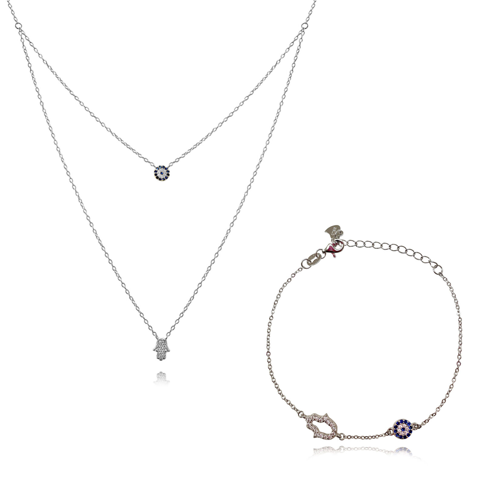 This Gift Set includes: Alara Luck Evil Eye Layering Necklace (Gold) + Azra Luck Evil Eye Bracelet (Silver)