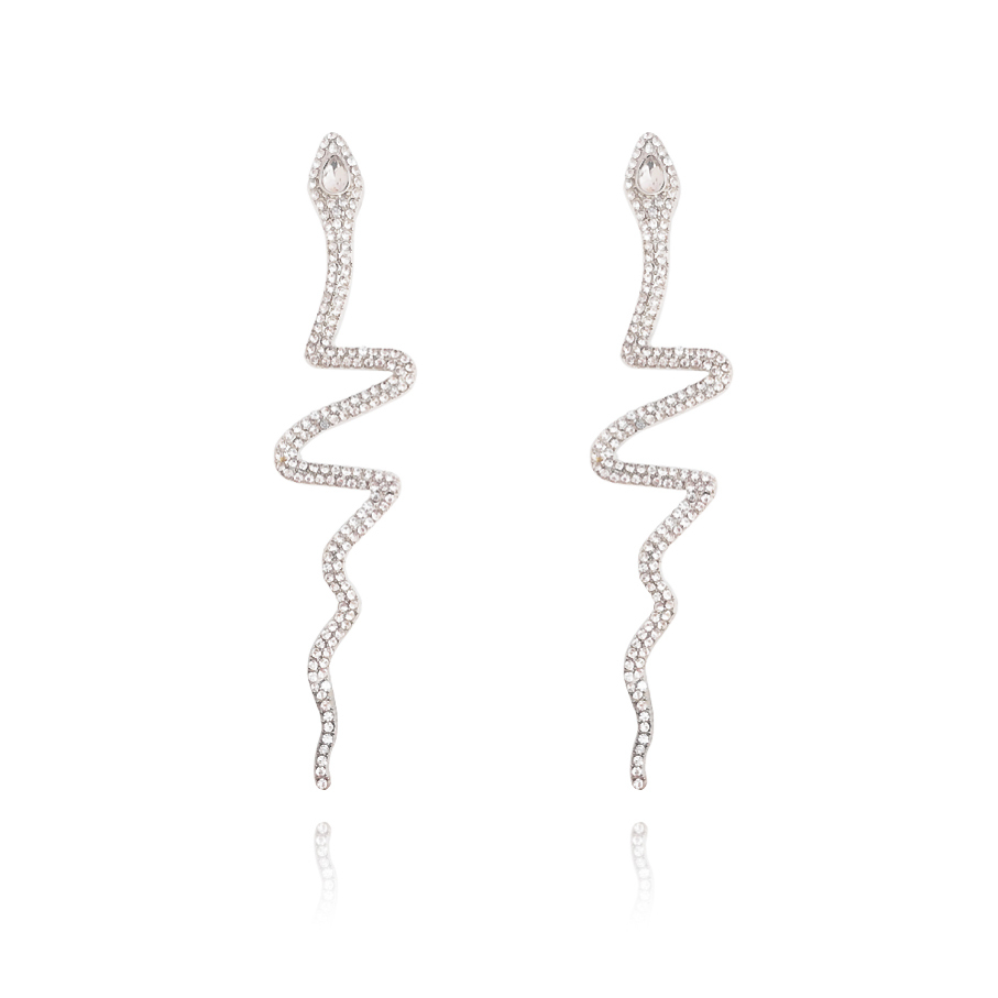 Fashion is daring. Introducing Alba Fashion Is Daring Earrings — a chic and bold snake statement showcasing your outspoken high fashion attitude. This design is crafted in environmentally friendly stainless steel (nickel free) with silver plating and shimmering cubic zirconias. Eye-catching and uncompromising, this edgy and unique statement is an exclamation mark for an effortless style-up. Perfect for fashion events, runway styling, dressy occasions, modern, punk, edgy, smart casual styles and more.