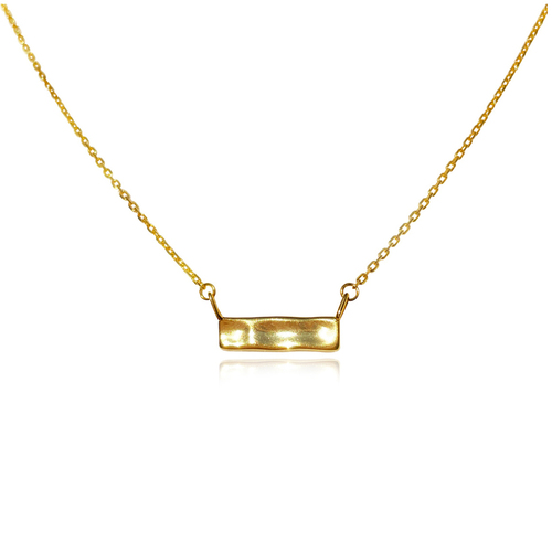 Timeless, succinct and chic. Introducing Alva Minimal Muse Bar Pendant Necklace (Gold Vermeil) - a contemporary and minimal neckpiece for lovers of simplicity and style. This design features a lightly undulated rectangular bar pendant attached to a standard gold chain. The bar pendant is smoothly polished with a reflective high shine. This neckpiece is made in solid sterling silver with 2.5 microns of 18K gold plating (to Gold Vermeil Jewellery Standards) for hypoallergenic, enduring wear and a noble gold shine. A classy style that suits all personal styles. This neckpiece is 45cm long including a 5cm adjustable link for your ideal fit. Perfect for wearing as its own and layering with other neckpieces. Hypoallergenic, nickel, lead, and cadmium free.
