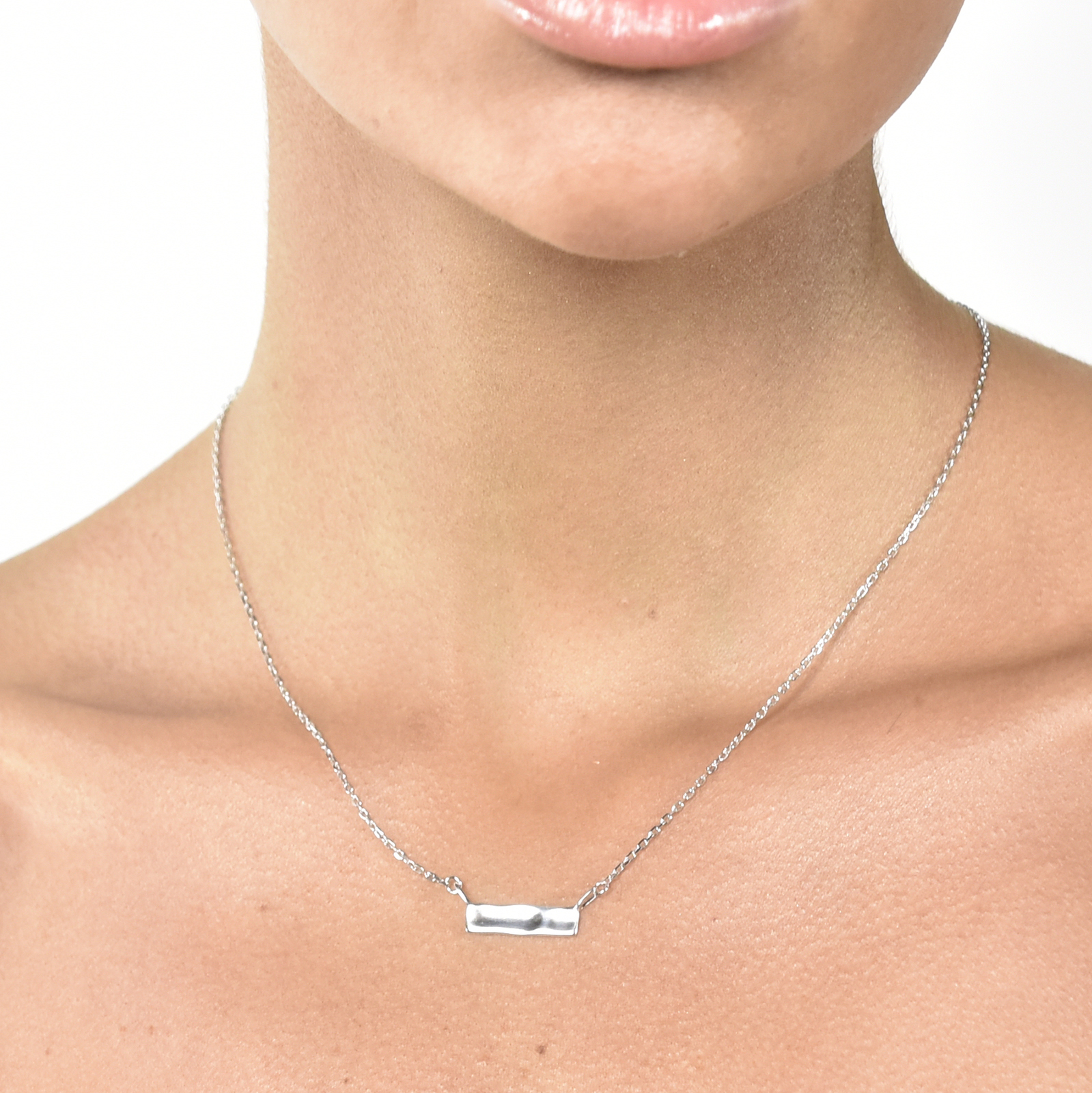 Timeless, succinct and chic. Introducing Alva Minimal Muse Bar Pendant Necklace (Silver) - a contemporary and minimal neckpiece for lovers of simplicity and style. This design features a lightly undulated rectangular bar pendant attached to a standard gold chain. The bar pendant is smoothly polished with a reflective high shine. This neckpiece is made in solid sterling silver with rhodium plating for hypoallergenic wear and an extra anti-tarnish protection. A classy style that suits all personal styles. This neckpiece is 45cm long including a 5cm adjustable link for your ideal fit. Perfect for wearing as its own and layering with other neckpieces. Hypoallergenic, nickel, lead, and cadmium free.
