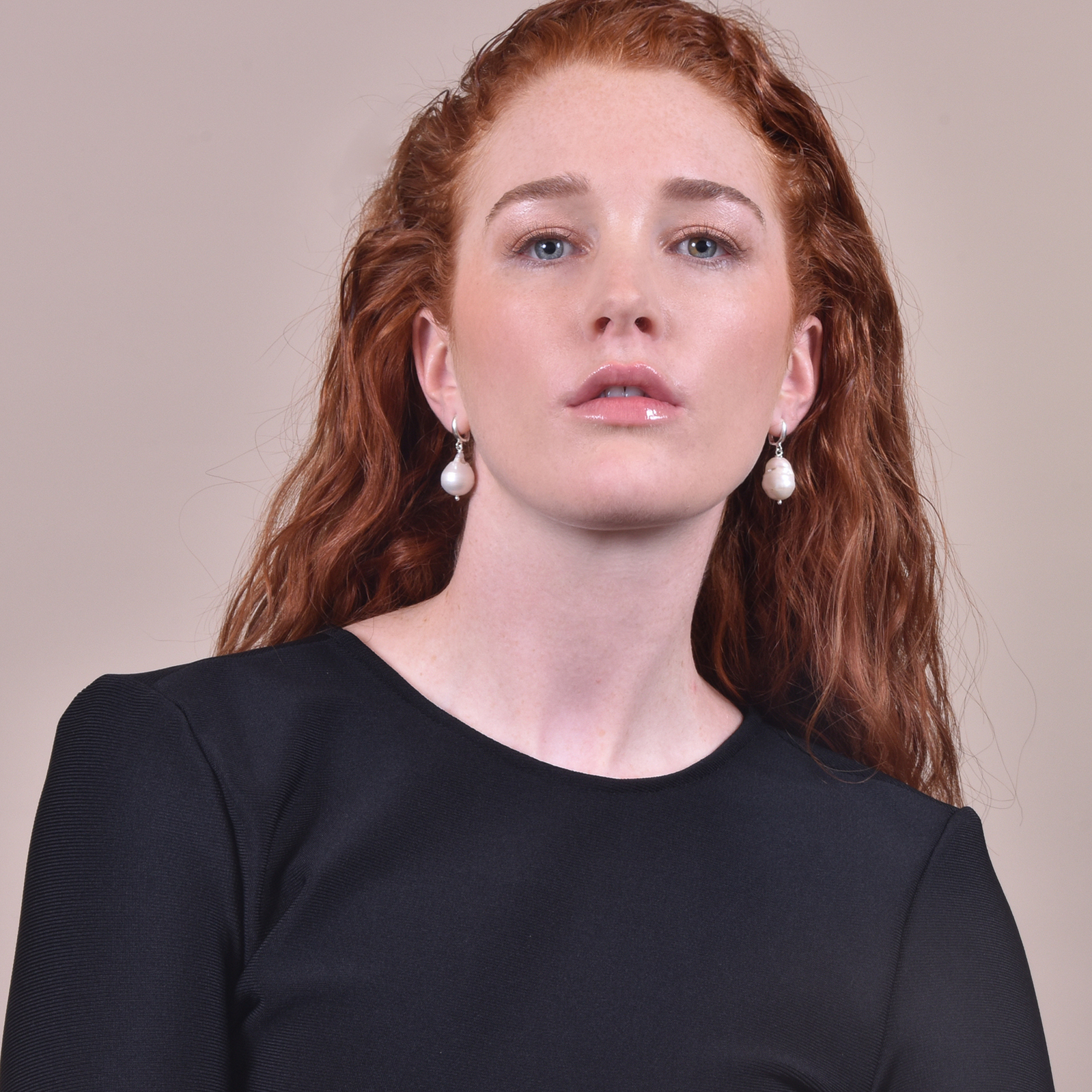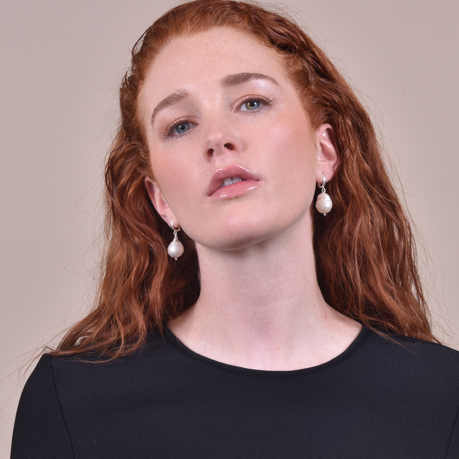 Classic baroque pearl drops with unique U shaped silver hoops - introducing Alyx Silver Hoop Baroque Pearl Earrings - an ethically handcrafted pearl drop style featuring natural baroque pearls and U shaped artisan silver hoops. Classy, feminine and elegant, silver and natural pearl shine softly illuminate your feminine beauty in a timeless way. The silver hoops are handcrafted in solid sterling silver with a unique curve. Perfect for all occasions and all styles. 100% nickel, cadmium and lead free
