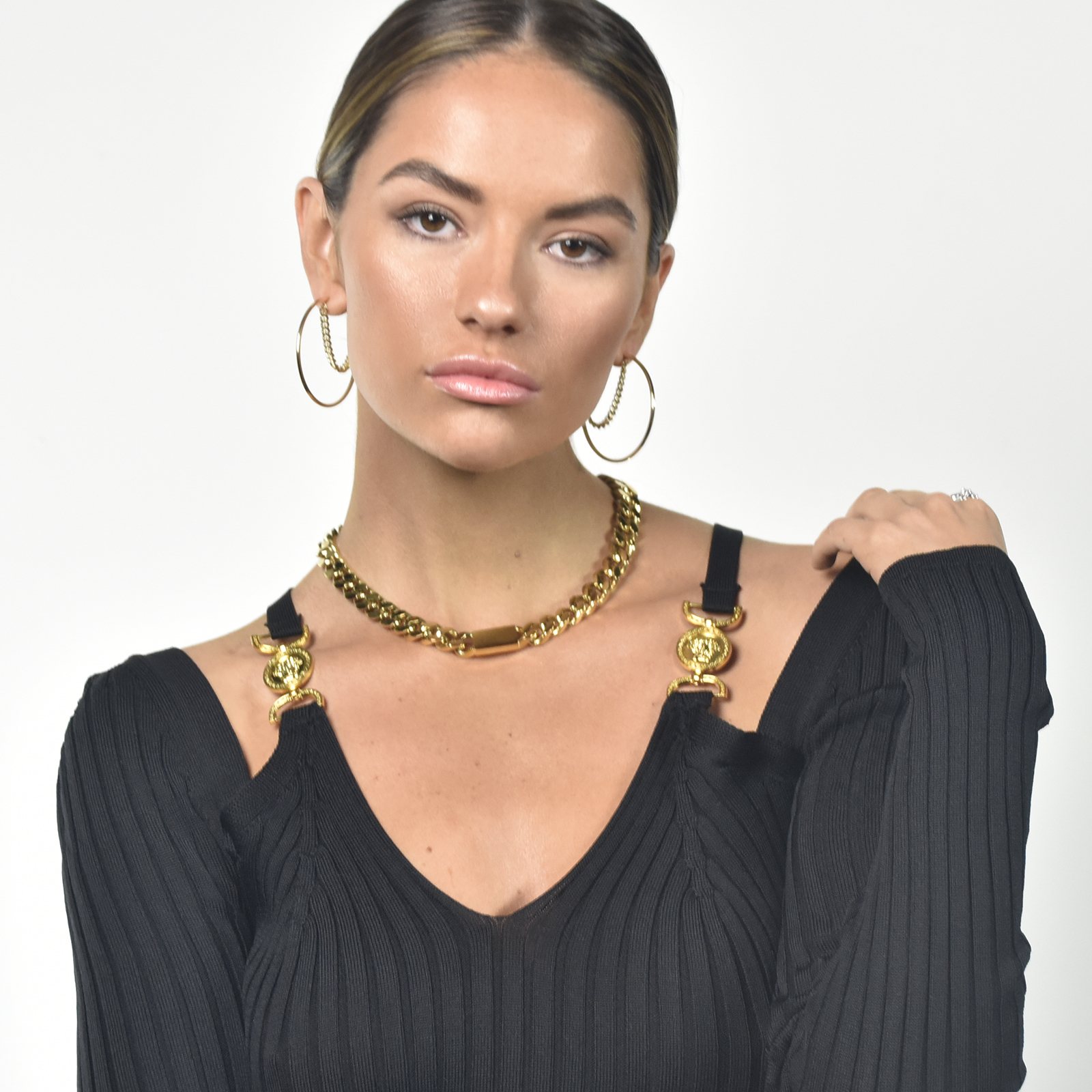 Own your style and strength. Introducing Amabel Modern Muse Chain Necklace (Gold) - Culturesse’s elevated link chain neckpiece for bold muses. This design features a solid chain with a rectangular plate in the middle. This neckpiece is 40cm and comes with a 3.5cm adjustable link allowing you the create your preferred lengths between 40cm to 43.5cm. This neckpiece is made in solid 316 Grade Stainless Steel with increased resistance to corrosion, acidic elements, and high temperature. Heavy gold plated with 2.5 microns of 18k gold, the gold shine is luxurious and enduring. Perfect for modern, creative, high fashion, punk, smart casual styles and more. Hypoallergenic, nickel, lead, and cadmium free.