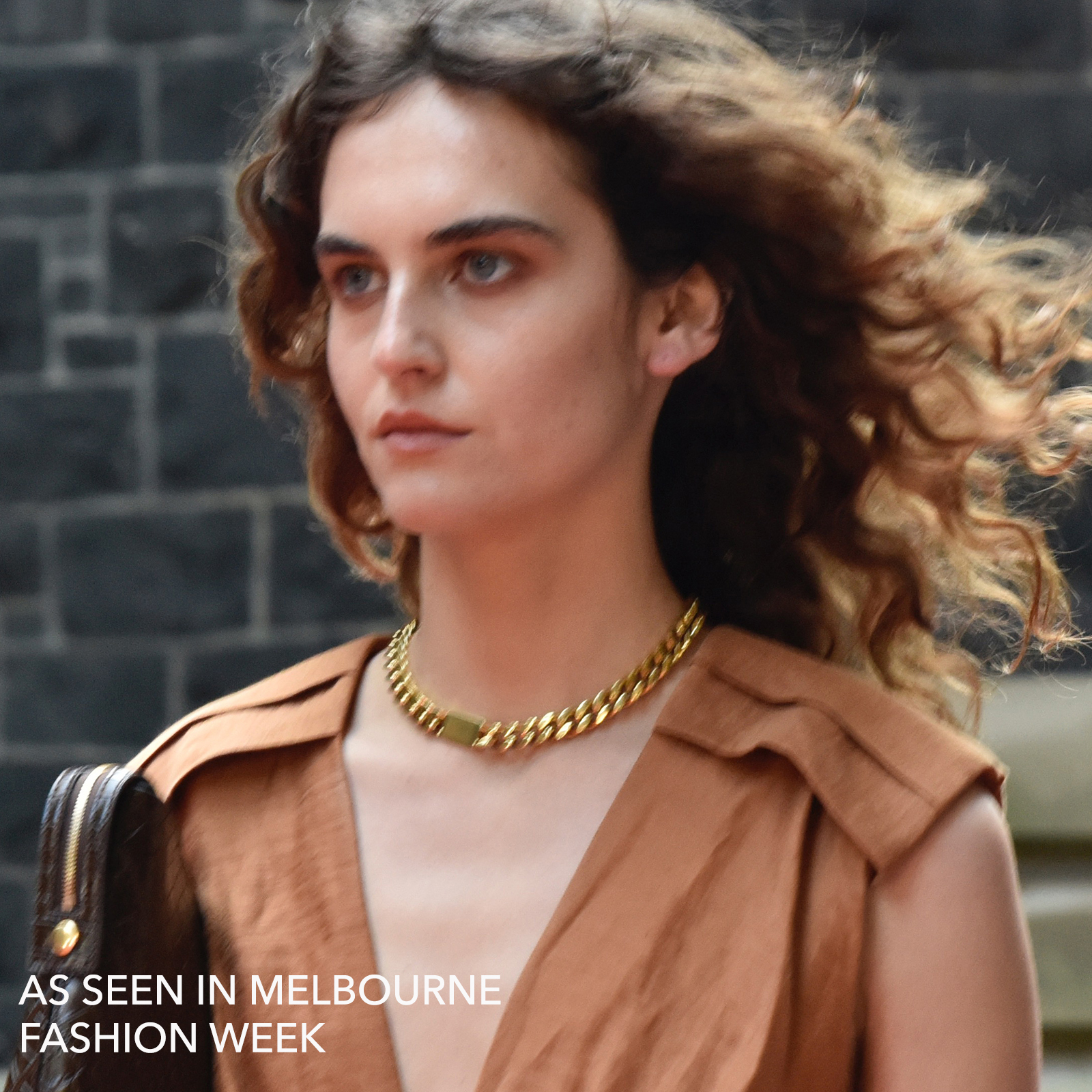 This necklace is 43.5cm long. Please kindly note that the position of the necklace sitting on your chest can vary from individual to individual depending on your top size. Model is a size 8.