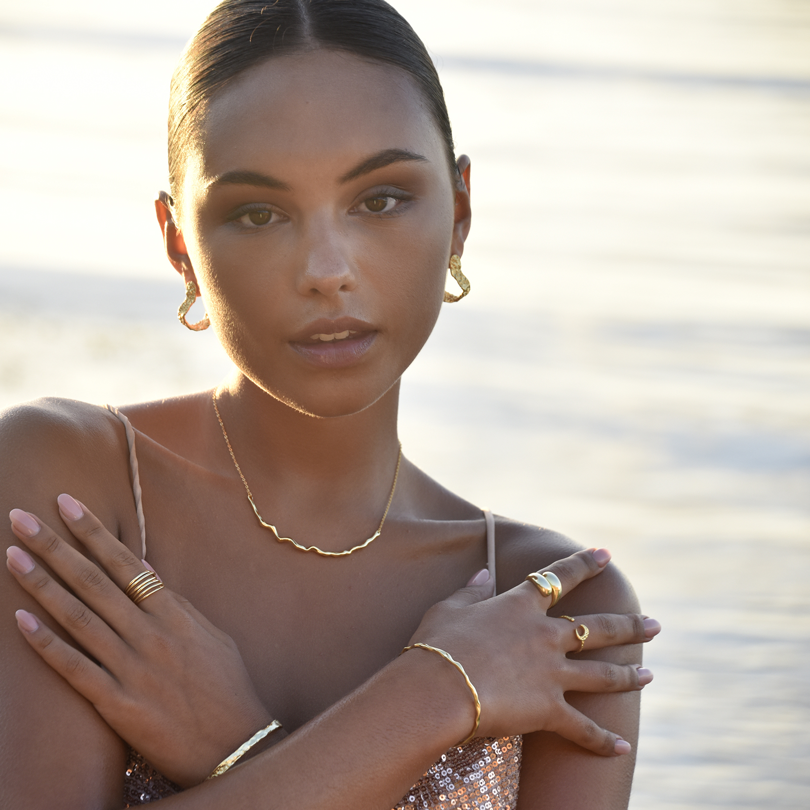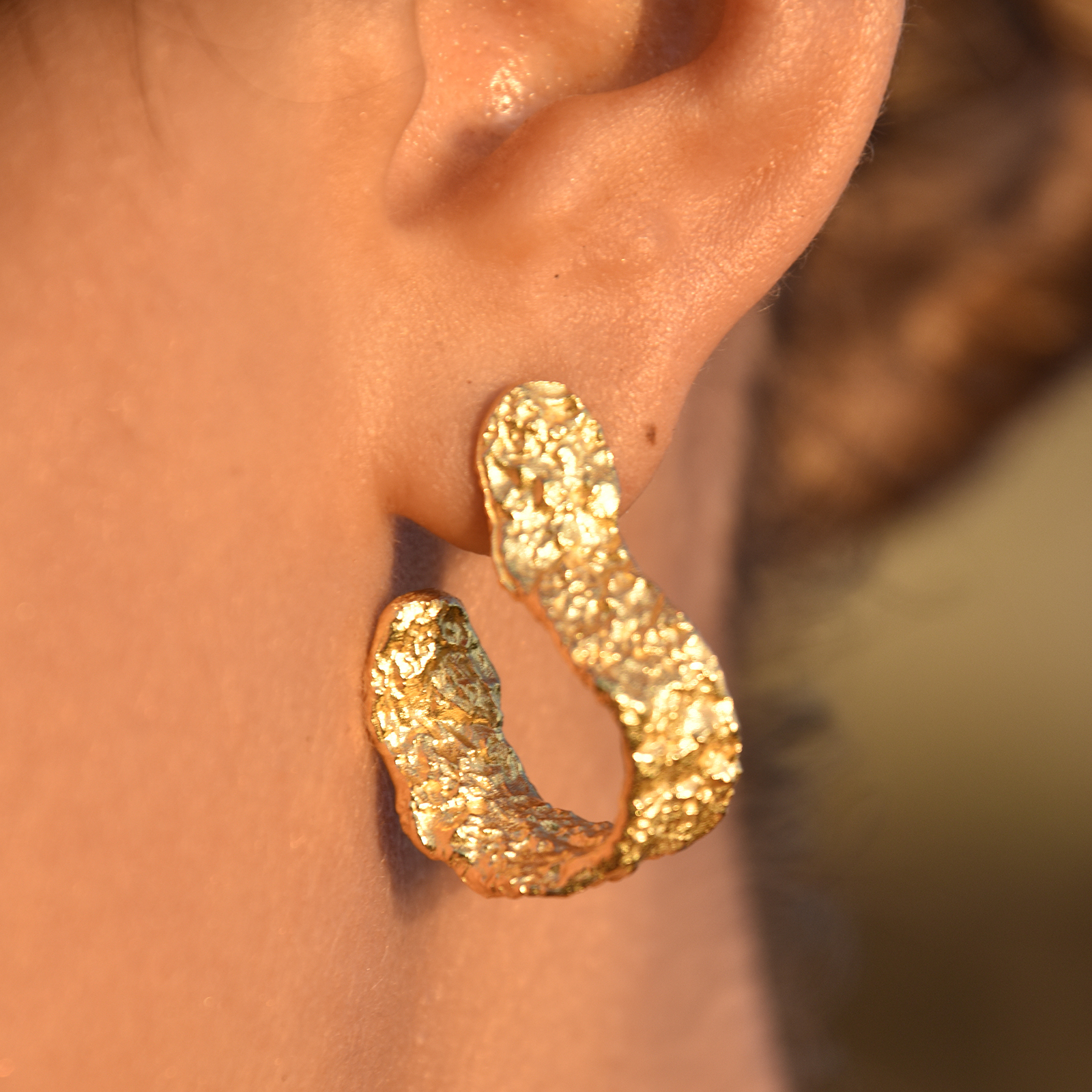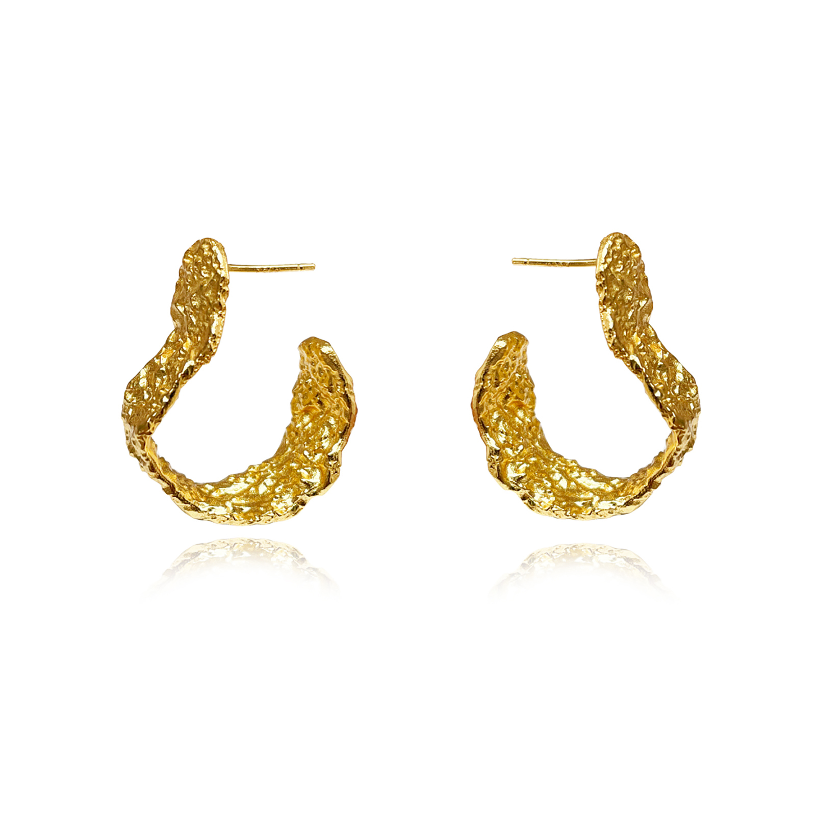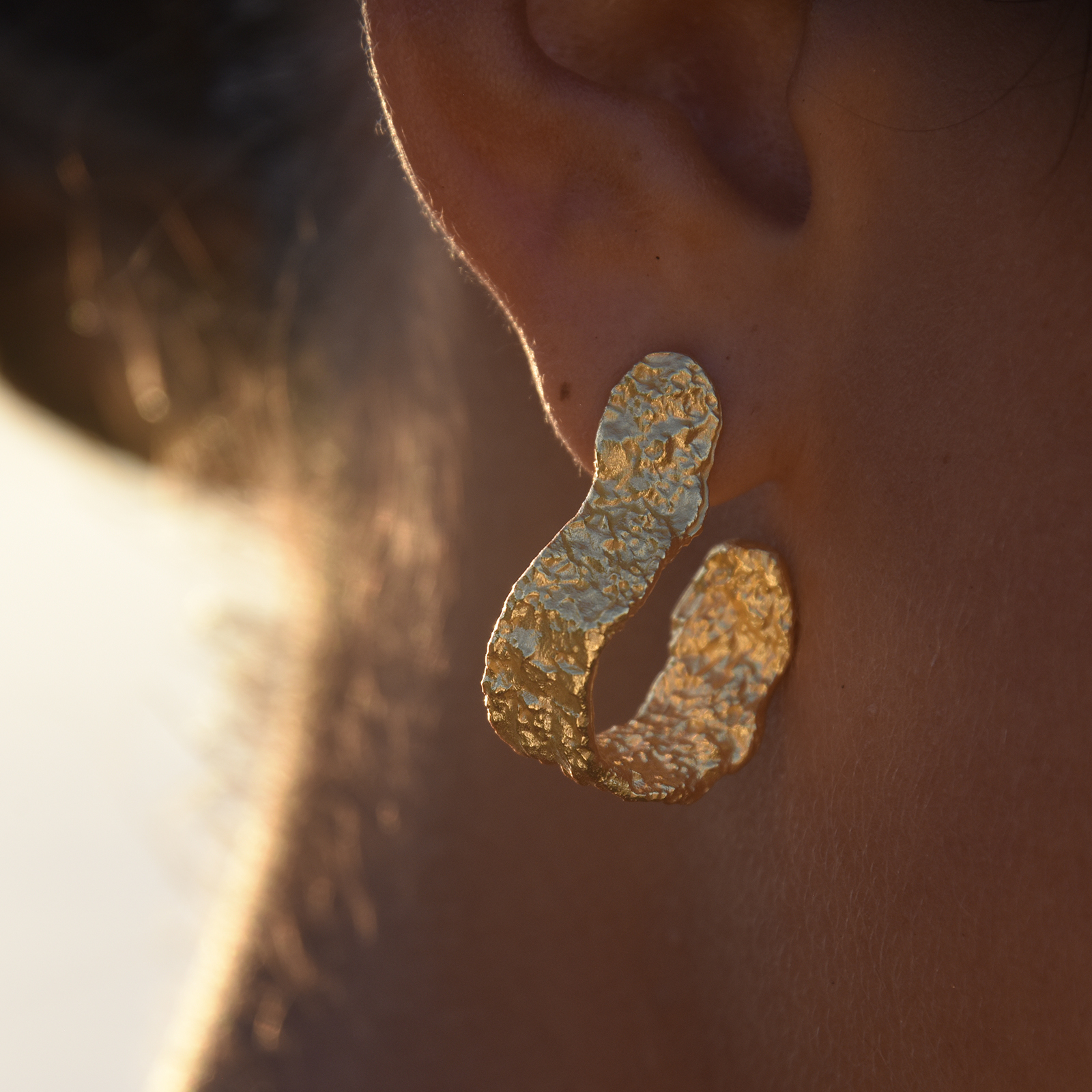 Introducing Amandine Artisan Sculptural Flow Earrings (Gold Vermeil) - an artisan crafted ear beauty inspired by coastal textures and the flow of the ocean. This design features sculptured curves resembling the natural undulation of waves representing the constant change and motion in life. The earrings are made in solid sterling silver with 2.5 microns of 18K gold plating for a noble gold shine and hypoallergenic wear. A flamboyant and artsy jewellery piece for modern, creative, high fashion, chic, coastal, smart casual styles and more. Perfect for a special gift/treat for yourself and your special ones that can be treasured for a lifetime. Hypoallergenic, nickel, lead, and cadmium free.
