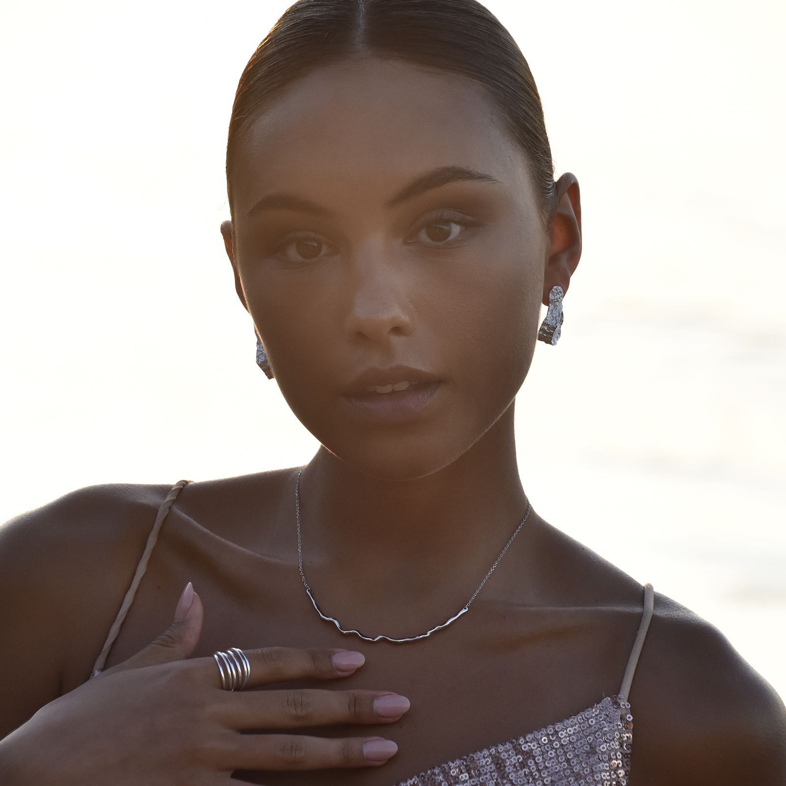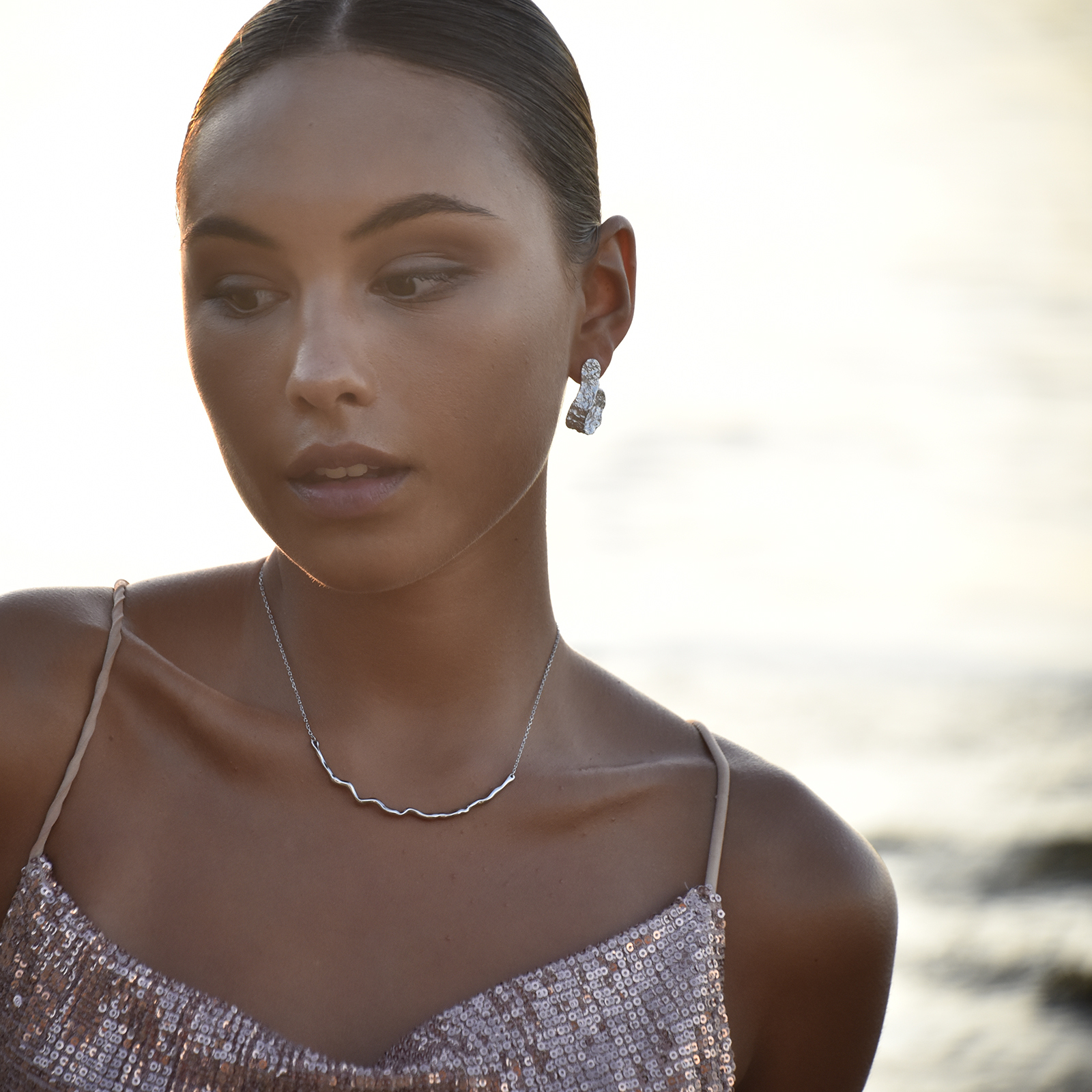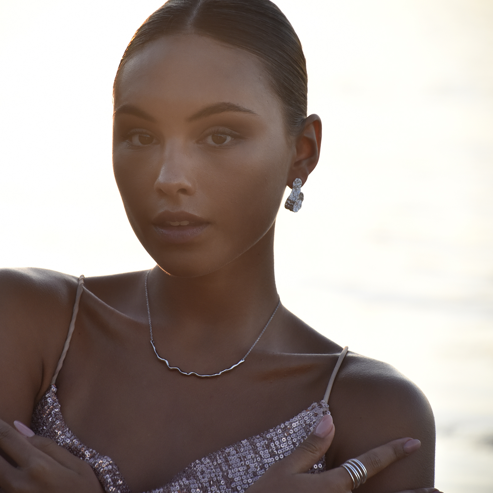 Introducing Amandine Artisan Sculptural Flow Earrings (Silver) - an artisan crafted ear beauty inspired by coastal textures and the flow of the ocean. This design features sculptured curves resembling the natural undulation of waves representing the constant change and motion in life. The earrings are made in solid sterling silver with precious white rhodium plating for endurable and hypoallergenic wear. A flamboyant and artsy jewellery piece for modern, creative, high fashion, chic, coastal, smart casual styles and more. Perfect for a special gift/treat for yourself and your special ones that can be treasured for a lifetime. Hypoallergenic, nickel, lead, and cadmium free.