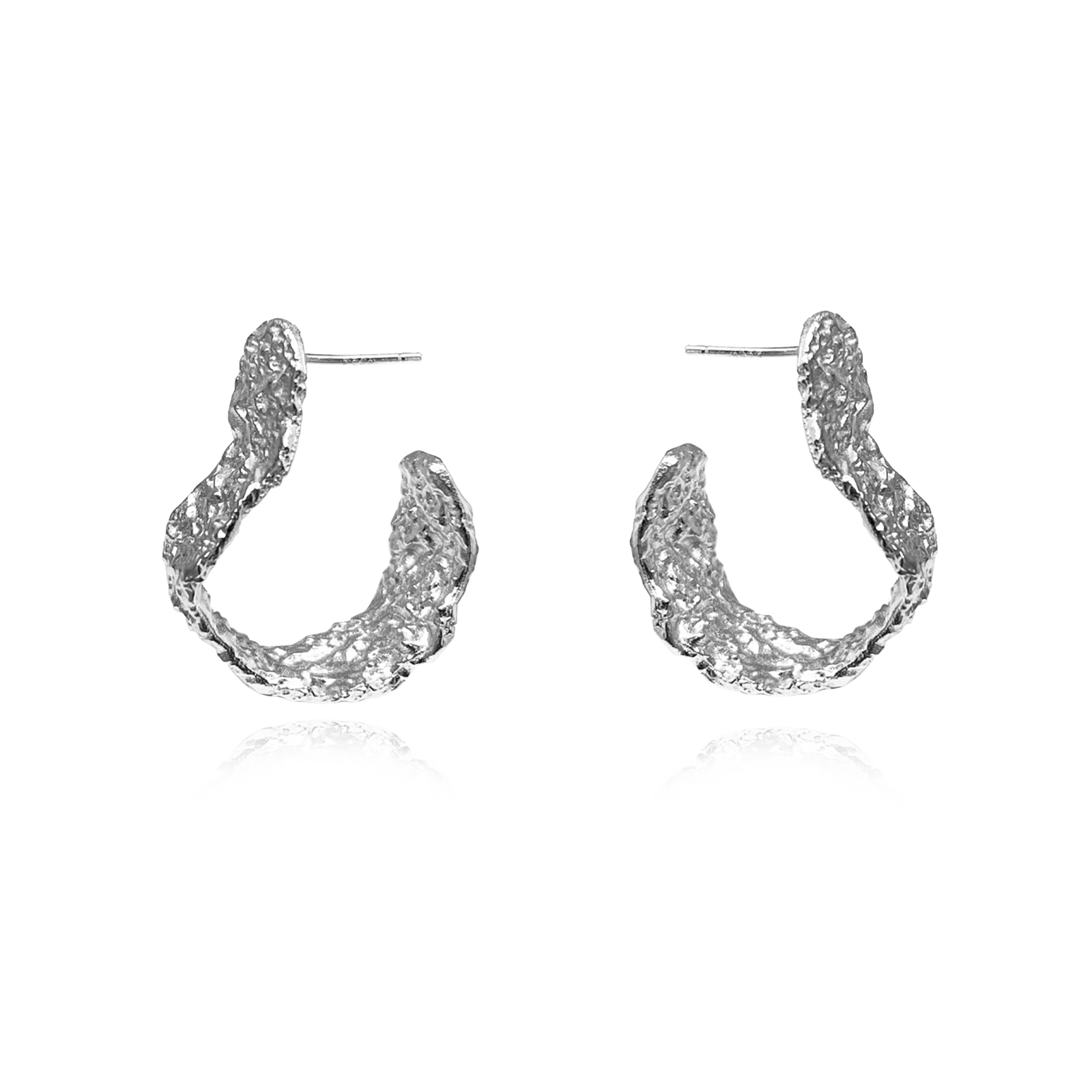 Nomad Fluid Sculpture Hoop Earrings (Silver)
