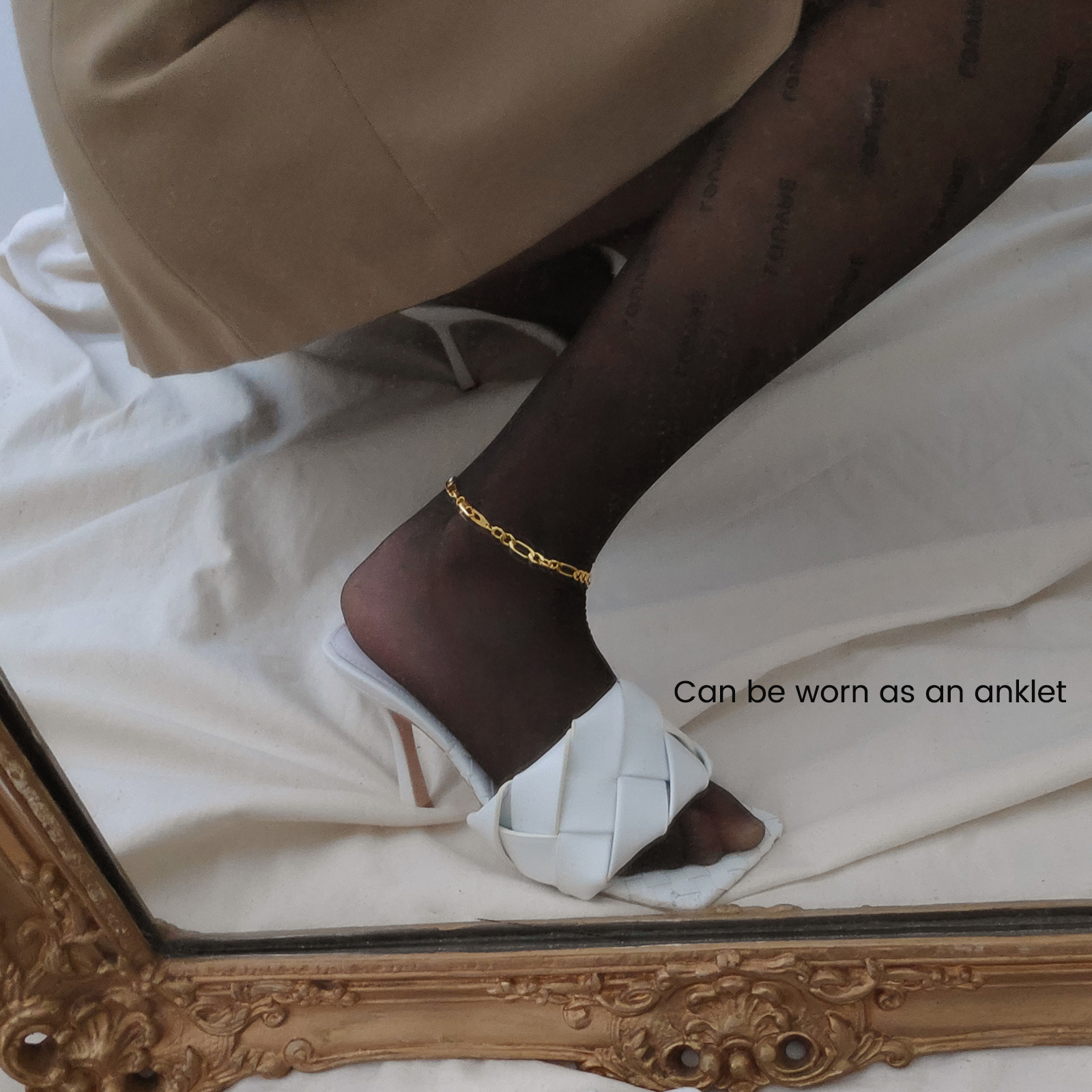 Add a fine chic chain style to your collection. Introducing Amari Gold Chain Bracelet / Anklet, a trendy, edgy and versatile chain delight to fill in the details. This classic chain bracelet is crafted in environmentally friendly stainless steel with quality 18K gold plating, giving the piece a rich gold shine that is also tarnish resistant. You can also wear it as an anklet. To adjust the length for a perfect personal fit, you can attach the clasp to any of the open links. Perfect for modern, chic, punk, edgy, trendy, minimalist, smart casual, everyday styling and more. Hypoallergenic, nickel, cadmium and lead free.