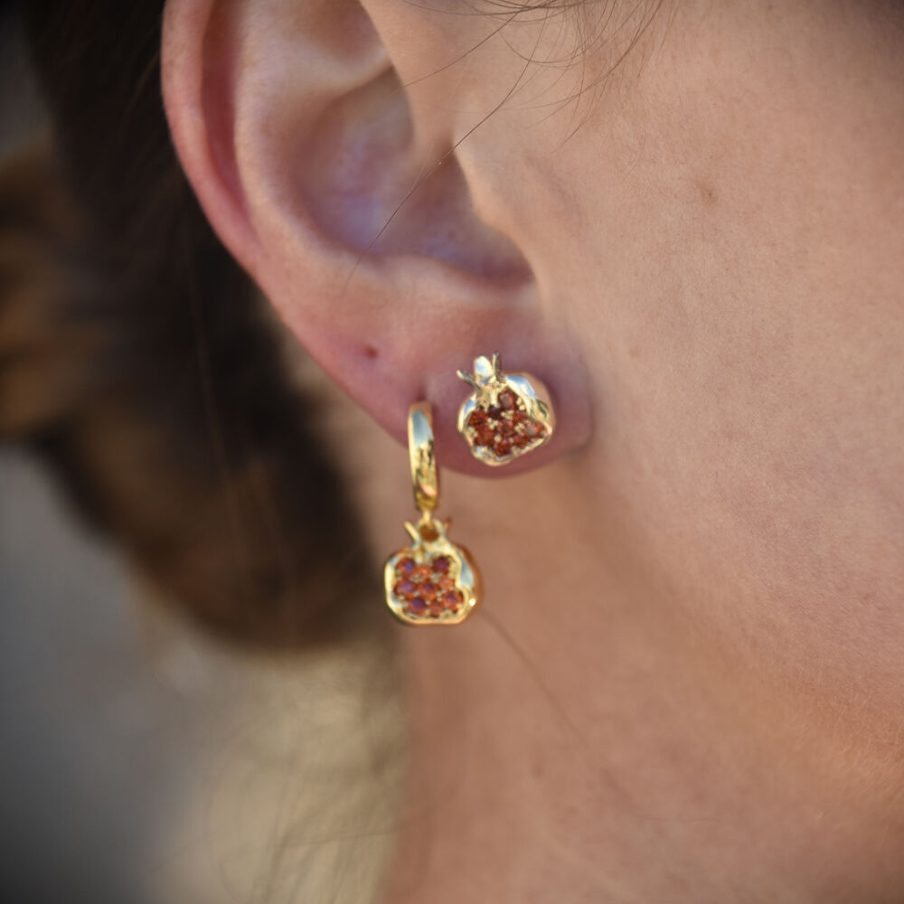 Life’s sweetness needs patience to taste. Introducing Amaris Pomegranate Stud Earrings - a unique artisan ear love inspired by fruits and natural healing. This design features detailed pomegranate studs adorned with red cubic zirconias. The earrings are made in environmentally friendly stainless steel with 14ct gold plating. A second-glance-worthy style highlight to spark creativity and love for life. Suitable for smart casual, casual, chic, layering, everyday style and more. Pomegranate drop earrings are not included.