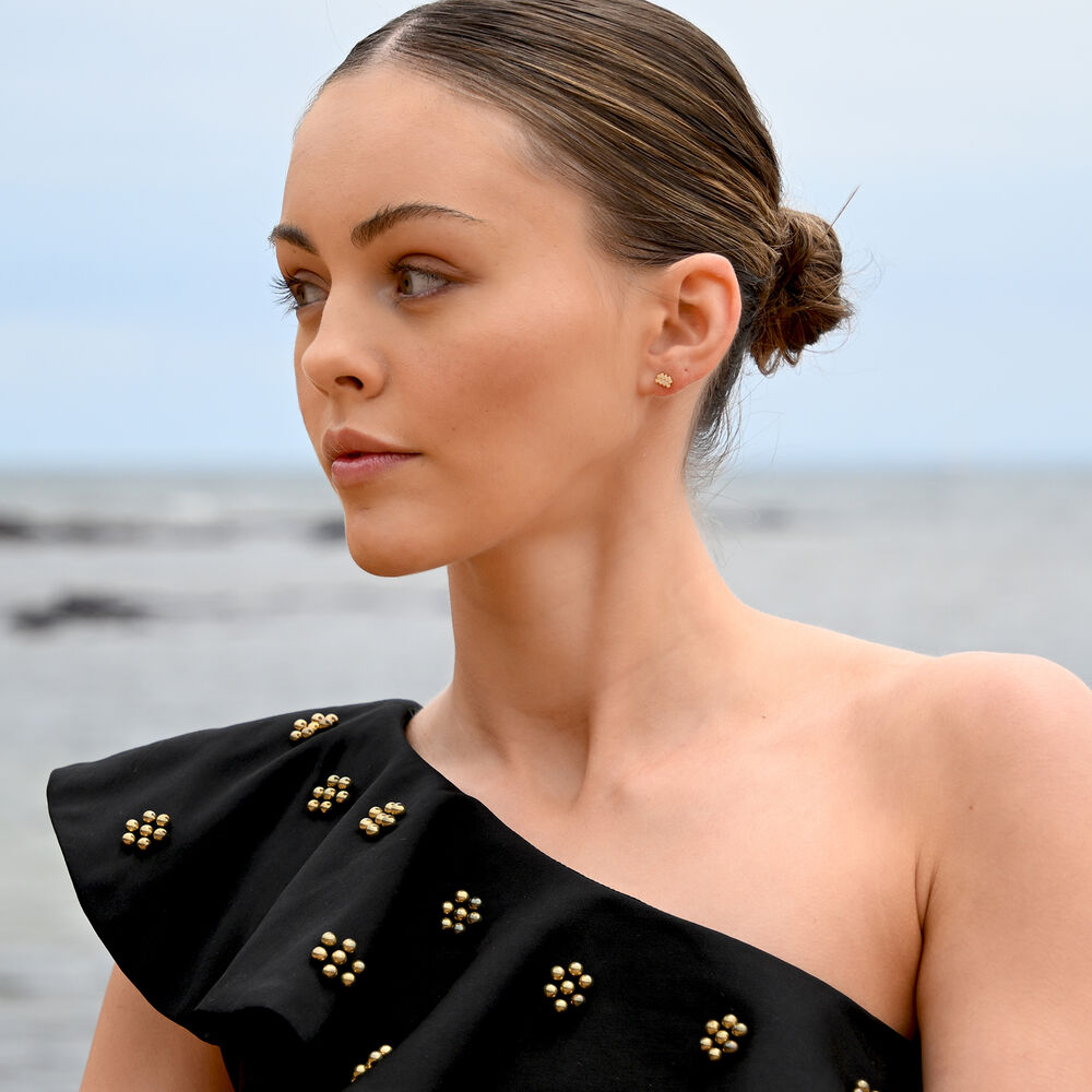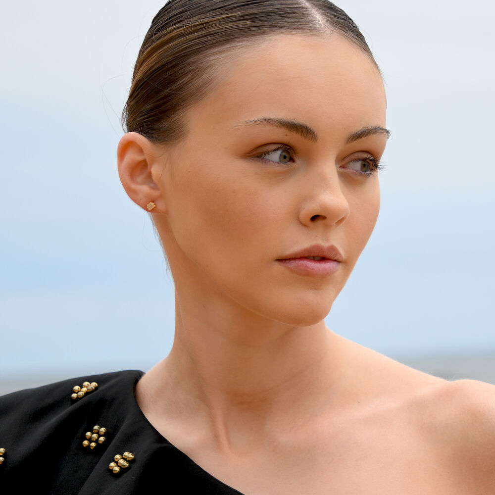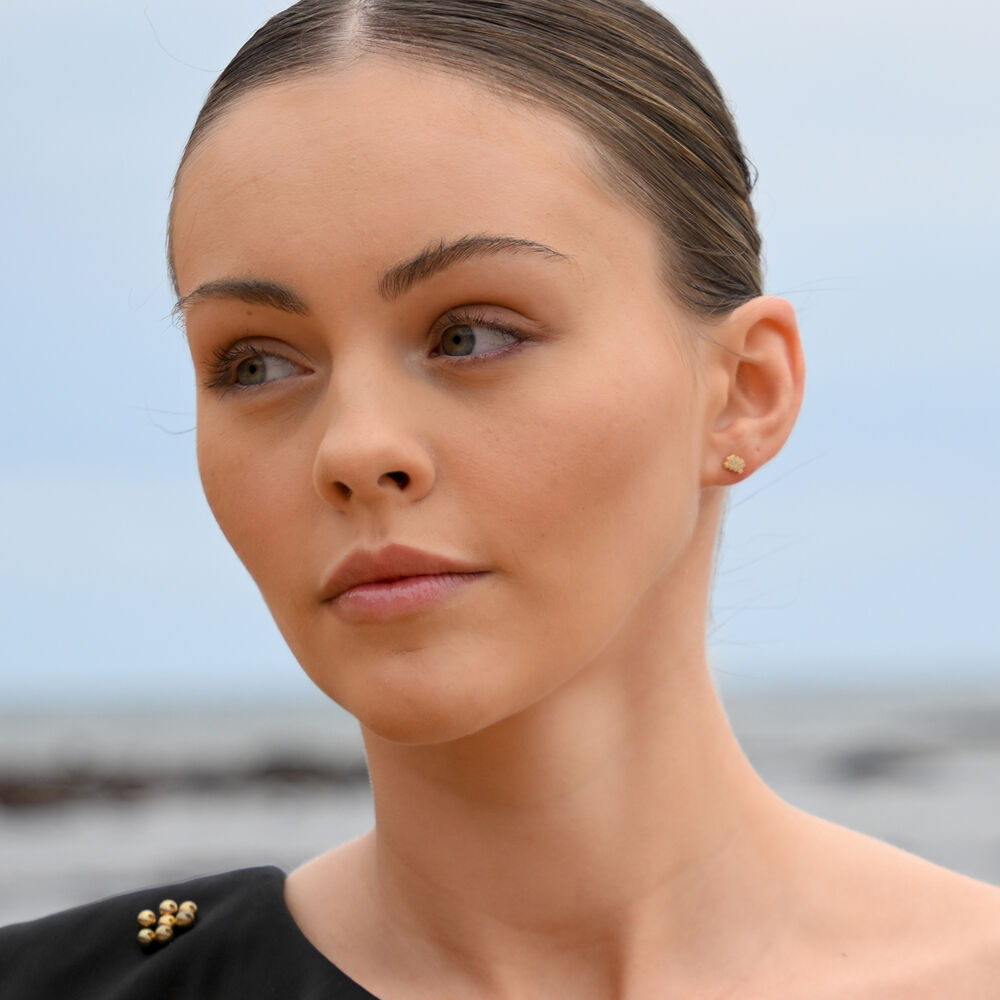 Aquarius Artisan Zirconia Pavé Stud Earrings (Gold)