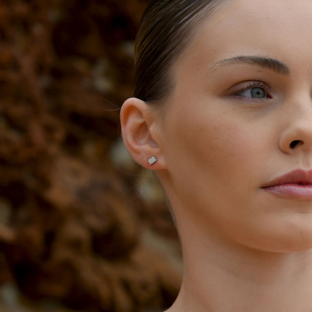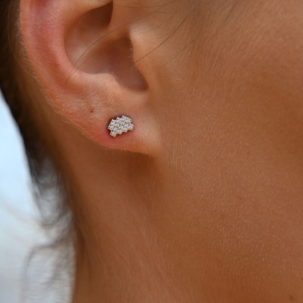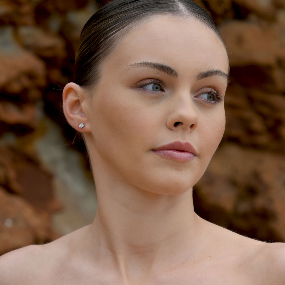 Aquarius Artisan Zirconia Pavé Stud Earrings (Silver)