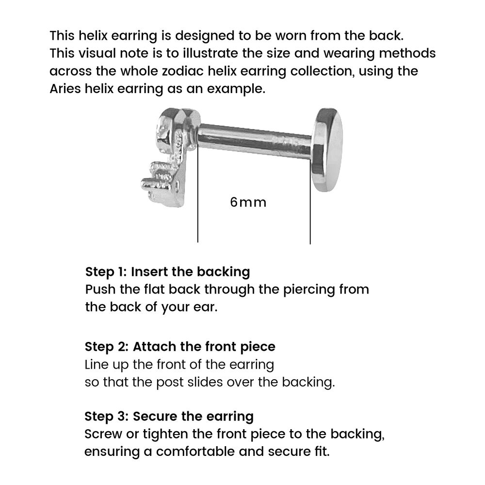 Culturesse 12 Zodiac Helix Earring Collection is designed with simplicity in mind along with meaningfulness in a delicate and refined form. As per our artisan jewellery ethics, each piece in this collection is crafted in solid sterling silver (nickel free). Each piece is adorned with high quality Austrian cubic zirconia, exuding a subtle sparkle in a chic and elegant form. Hypoallergenic, nickel, lead, and cadmium free. Available in 18ct gold or silver.