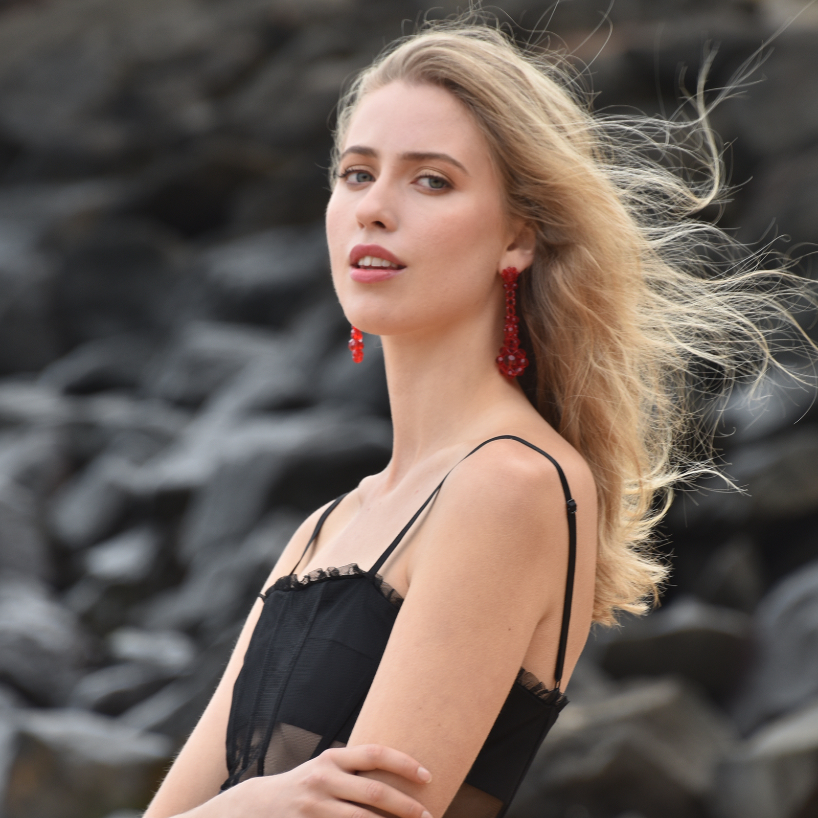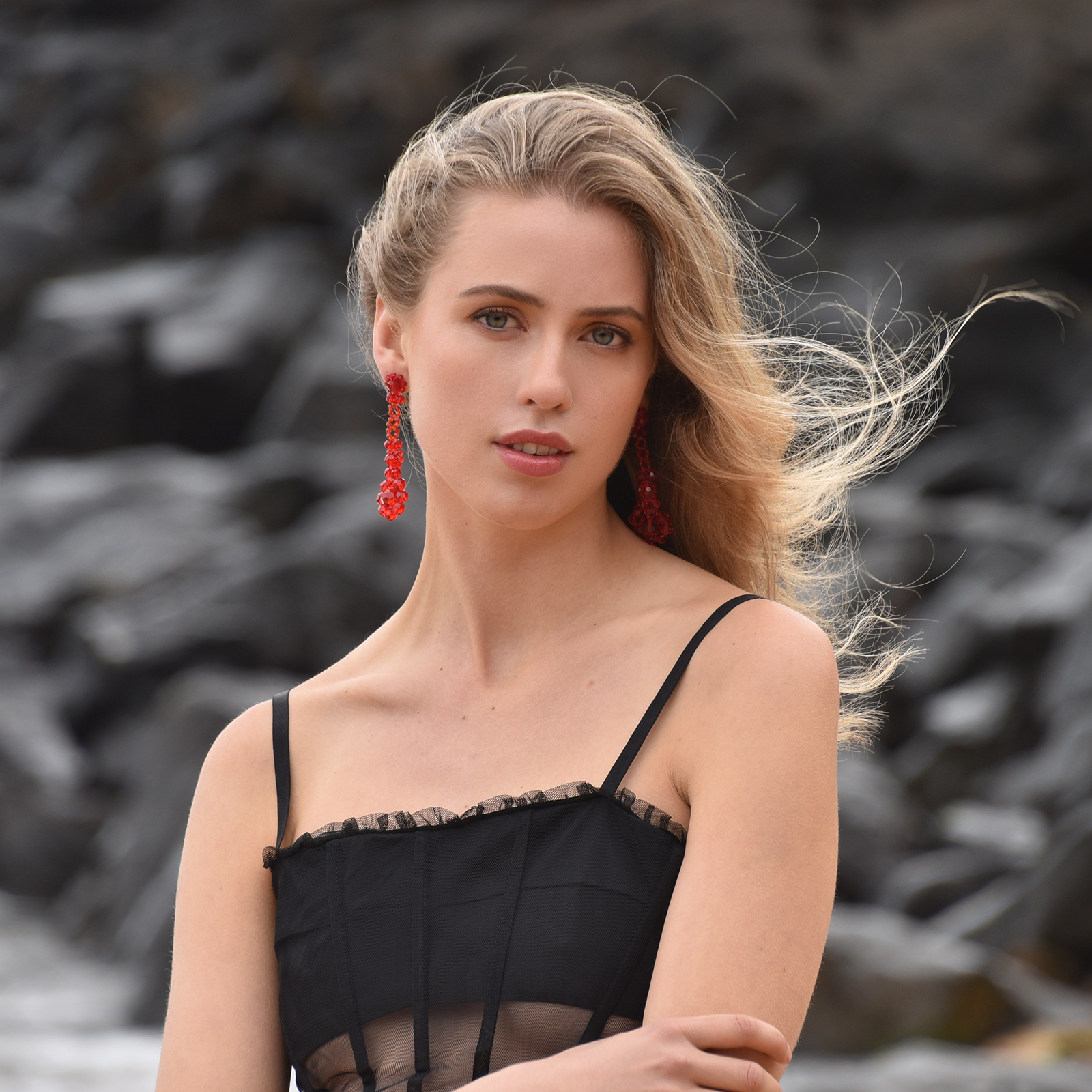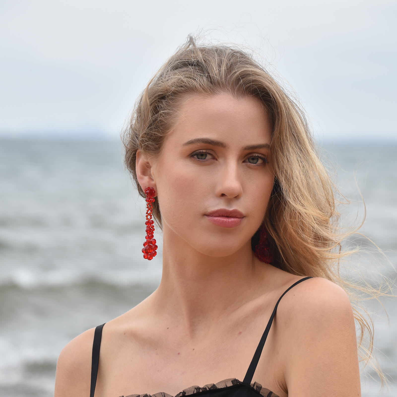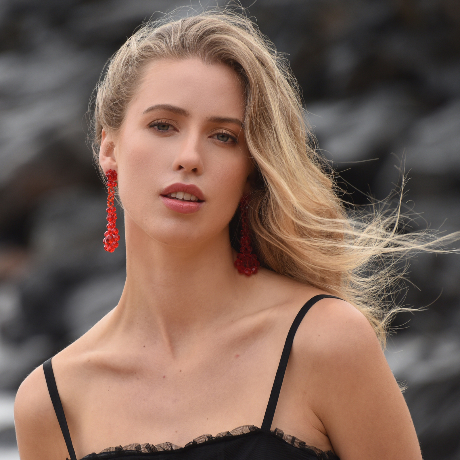 Speaking in the passion of red and as sweet as raspberry drops, introducing Arabella Rouge Beaded Earrings, a romantic, feminine yet outspoken design expressing your unique fashion statement 'boldly' and 'softly'. Just like a classic red lip shade, red and classy are never forgotten. Perfect for dressy, party, racing, semi-formal and formal occasion. - Sterling silver earring posts - Available for both pierced and non-pierced ears