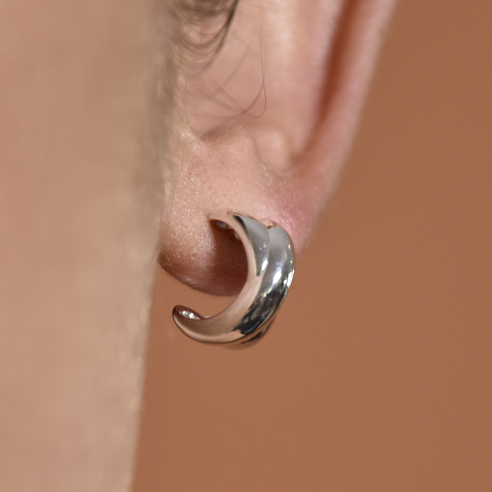Contemporary, subtle, feminine and smooth. Introducing Archie Artsy Twin Curve Earrings (Silver) - a modern and creative style ear love to add a unique touch to your everyday styling. This design features crossed twin C hoops forming a gentle and feminine flow. The earrings are made in solid sterling silver with rhodium plating for hypoallergenic, enduring wear and an extra anti-tarnish protection. Perfect for modern, artsy, creative, chic, minimalist, punk, smart casual, casual, earring layering, everyday styles and more. Hypoallergenic, nickel, lead, and cadmium free.