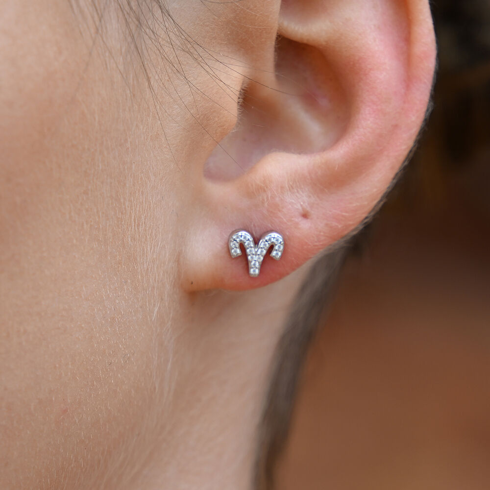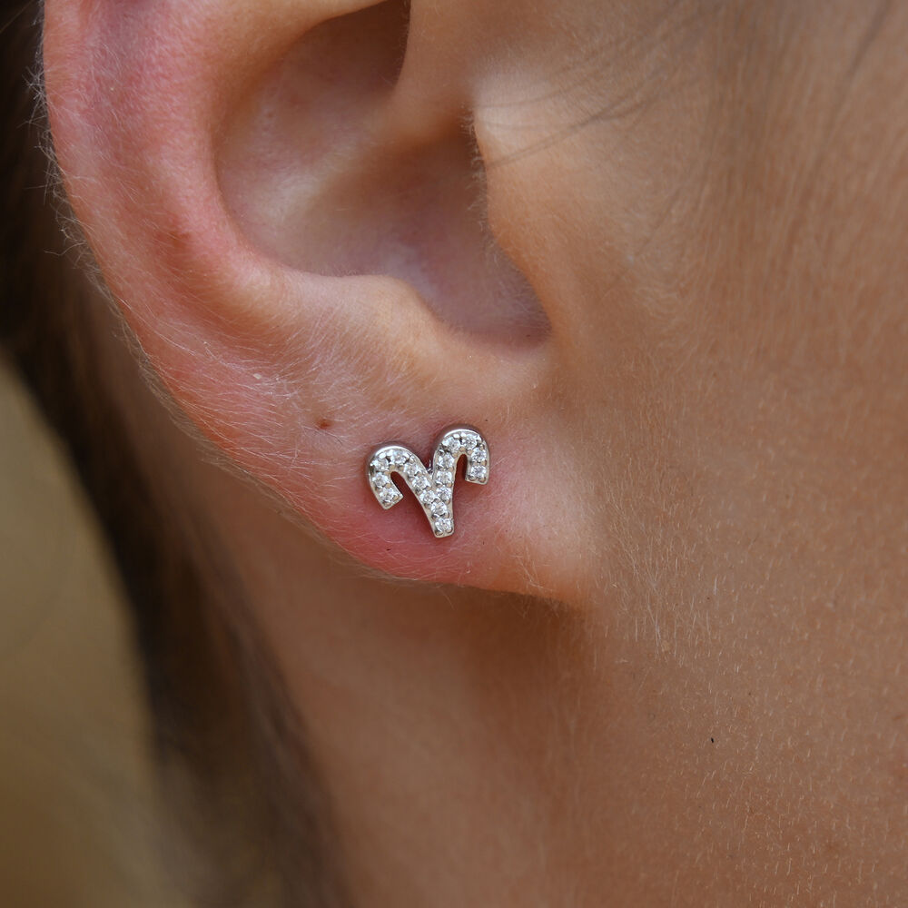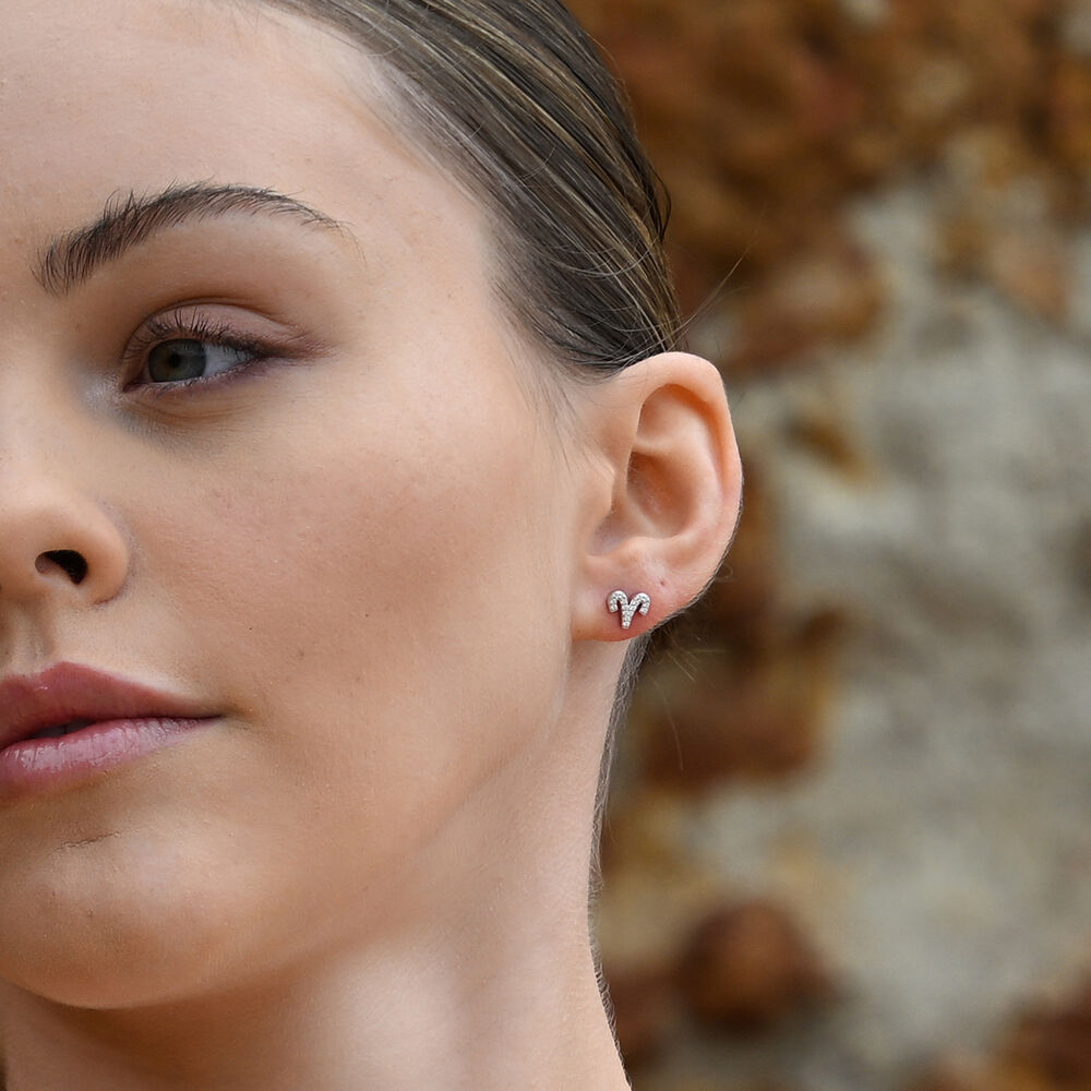 Aries Artisan Zirconia Pavé Stud Earrings (Silver)