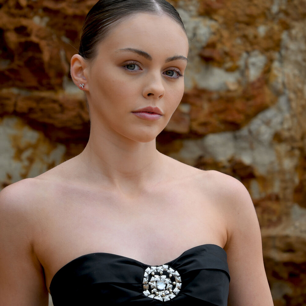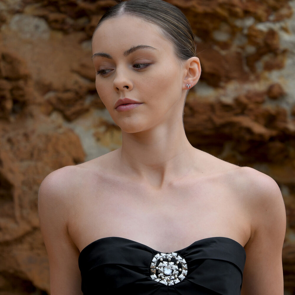 | Made from: | Austrian ZirconiaWhite Rhodium PlatingSolid Sterling Silver |