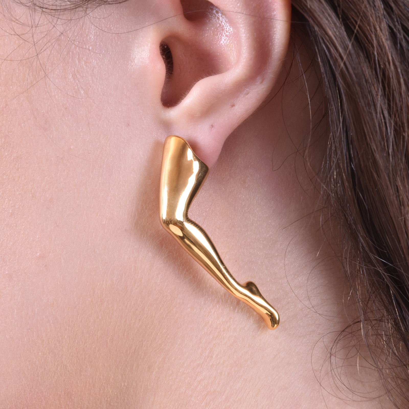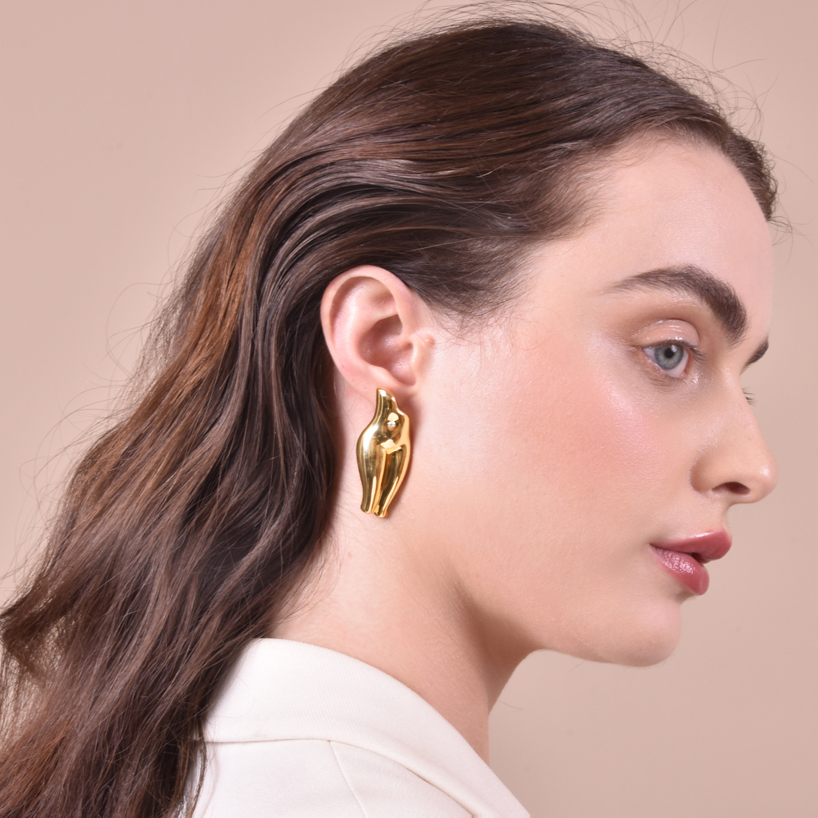 Culturesse Artisan Body Series are inspired by the natural beauty of female figures, embracing natural curves and shapes. When 'speechless' is not enough to describe the boldness and quirkiness, introducing ARTISAN BODY SERIES NO.2 Esmer Mismatching Earrings - once-off iconic body art collection made for the exquisite style makers. Exquisitely crafted with titanium steel with premium quality 18K yellow gold plating, the luxurious gold shine is smooth, silky and tarnish resistant. Pair with ARTISAN BODY SERIES NO.3 Eudora Necklace for a completed look.