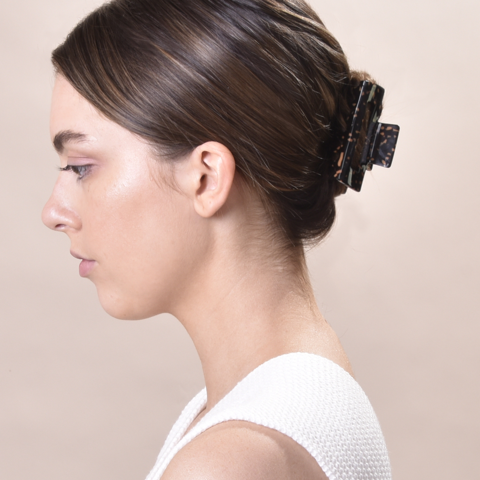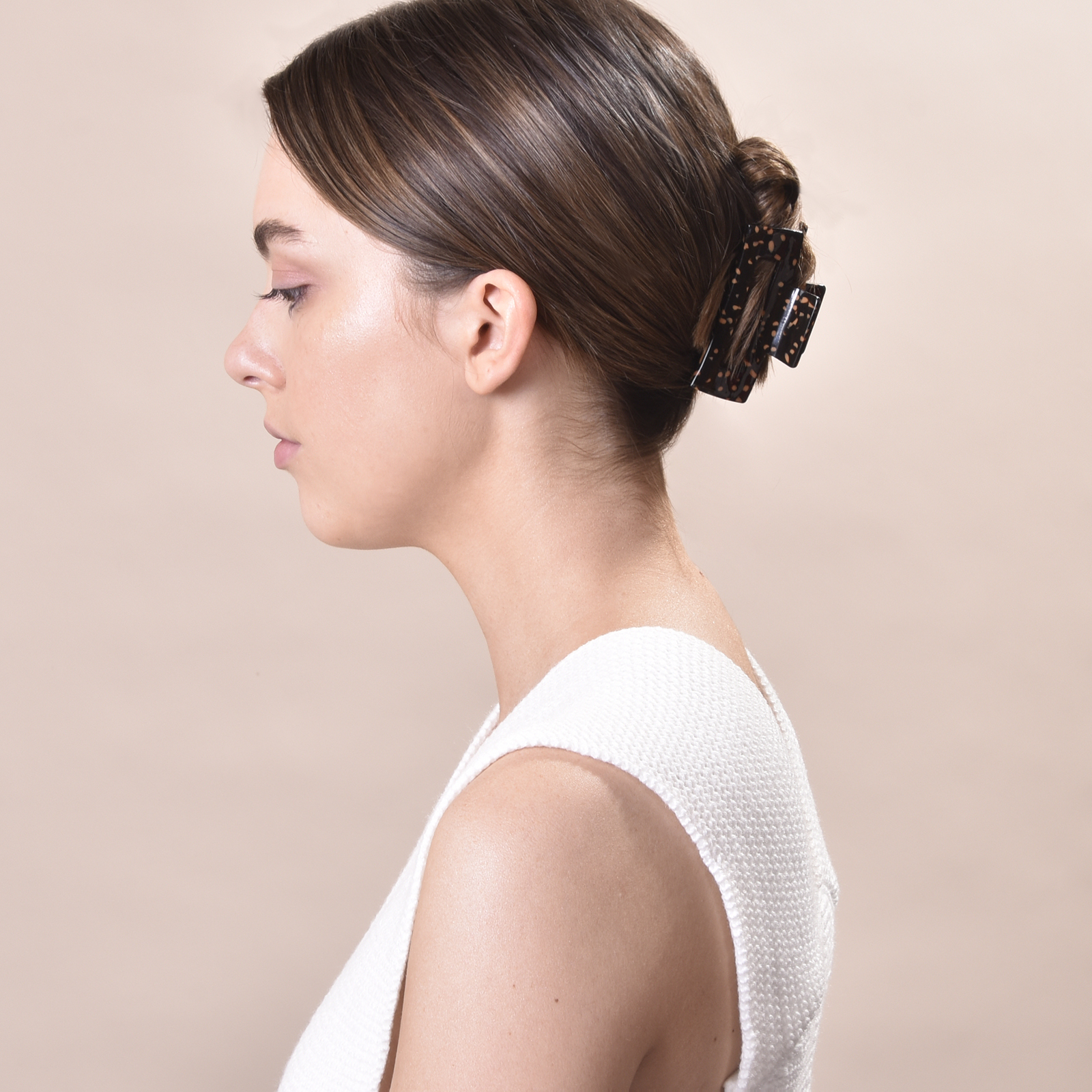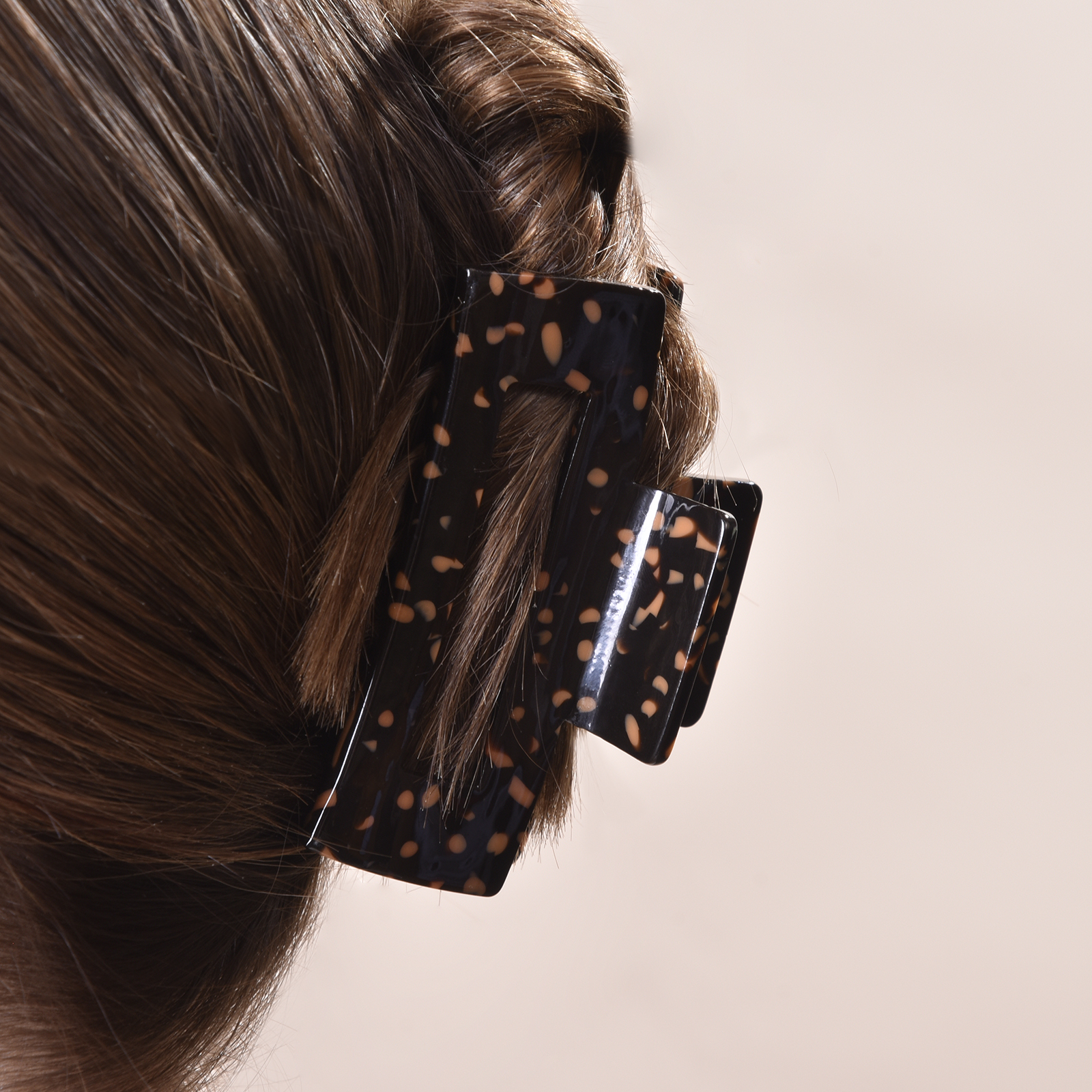 Everyday chicness with a trendy and stylish pattern. Introducing Arya Everyday Muse Hair Claw (Medium) - a modern style hair claw for your effortless day-to-day quick styling. This medium sized claw comes in a rectangular shape for a solid grab of hair. It is easy to clip on and off, adding a quick and stylish touch. Suitable for women and girls of all ages. Also suitable for children.