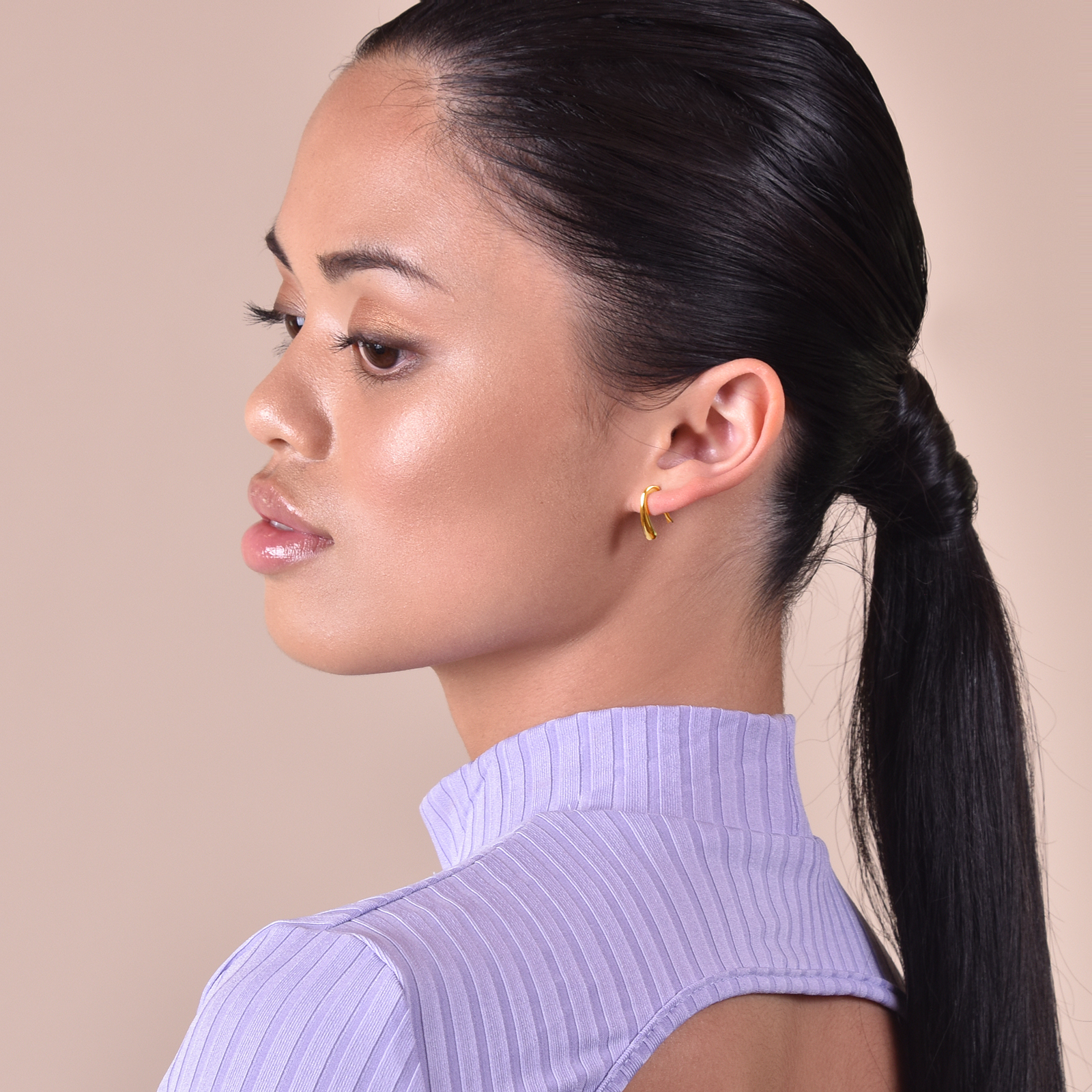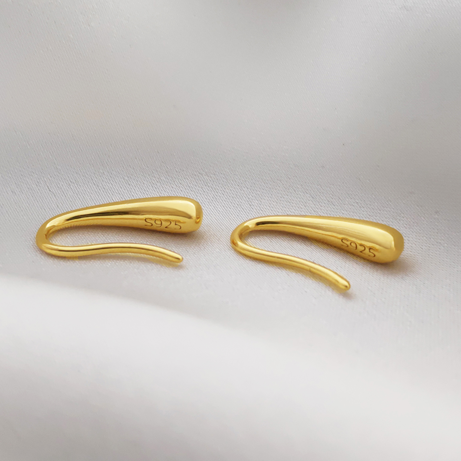 Add a subtle and enduring gold to your everyday style. Introducing Asa Everyday Gold Dainty Earrings - a timeless and classy ear love for a delicate touch. This design features an elongated teardrop curve at the front that tapers down towards the top and the back. The earrings are made of solid sterling silver with 18K gold plating and smooth polishing. Perfect for girls and women of all ages. Safe for children and for newly pierced ears. Hypoallergenic, nickel, cadmium and lead free.