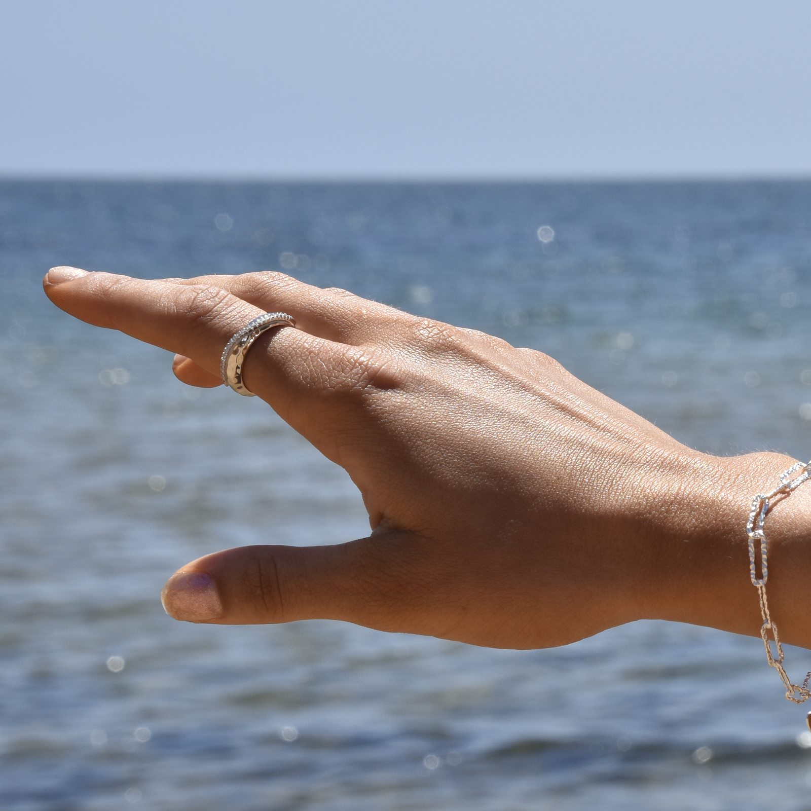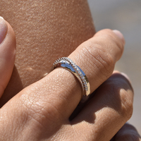 Contemporary and elegant finger beauty with a soft and shimmering flow. Introducing Astre Artisan Diamante Wave Open Ring (Silver) - a unique and feminine style artisan ring for your timeless and classy styling. This design features a classic ring band with a lightly hammered surface - adorned with a gorgeous twist and flow of Austrian zirconias. This ring is made in solid sterling silver for hypoallergenic and enduring wear. Due to the softness of sterling silver, this ring can be easily adjusted manually for your ideal fit. Perfect for modern, creative, chic, feminine, girly, elegant, formal, semi-formal, dressy, ring stacking, smart causal, casual, everyday styles and more. Hypoallergenic, nickel, cadmium and lead free.