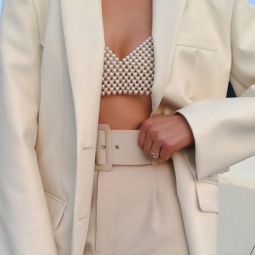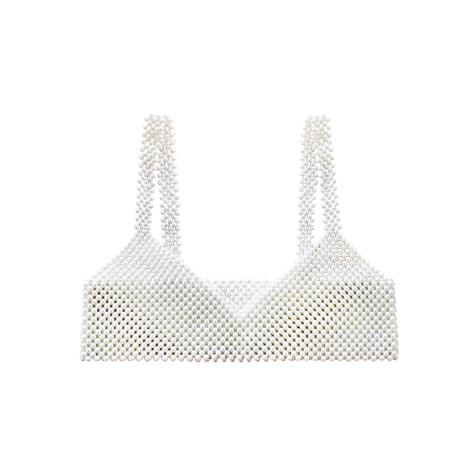 Vintage cross contemporary inspired high fashion gadget; Elastic threaded pearl garment that can be worn as a vest, bra or a high crop top, depends on your individual styles.