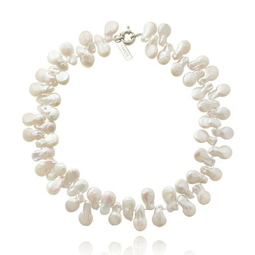 | Made from: | Natural Gourd-shaped Baroque PearlsRhodium Plated Brass Clasp |