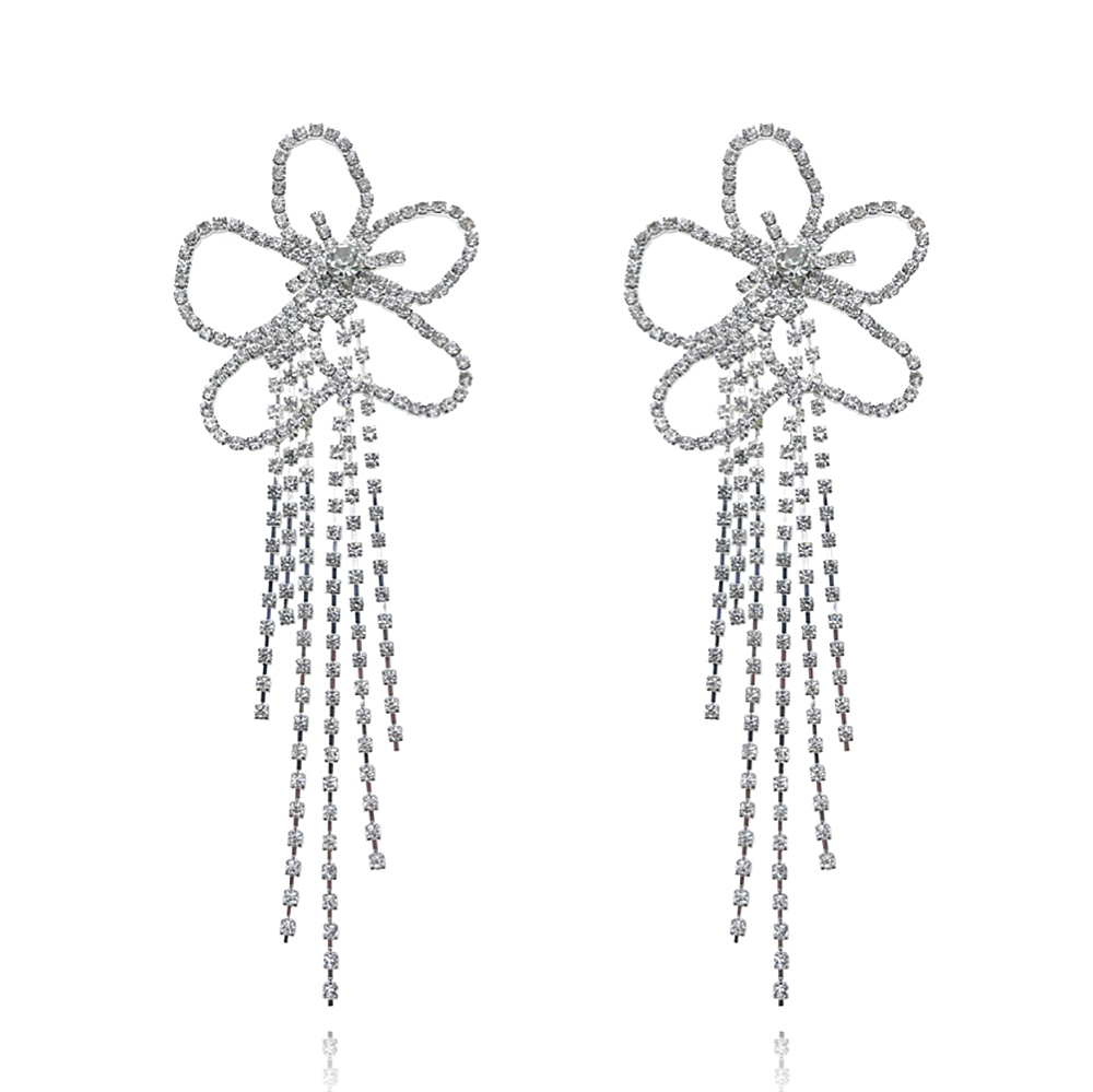 Augustin Catwalk Diamante Tassel Flower Earrings