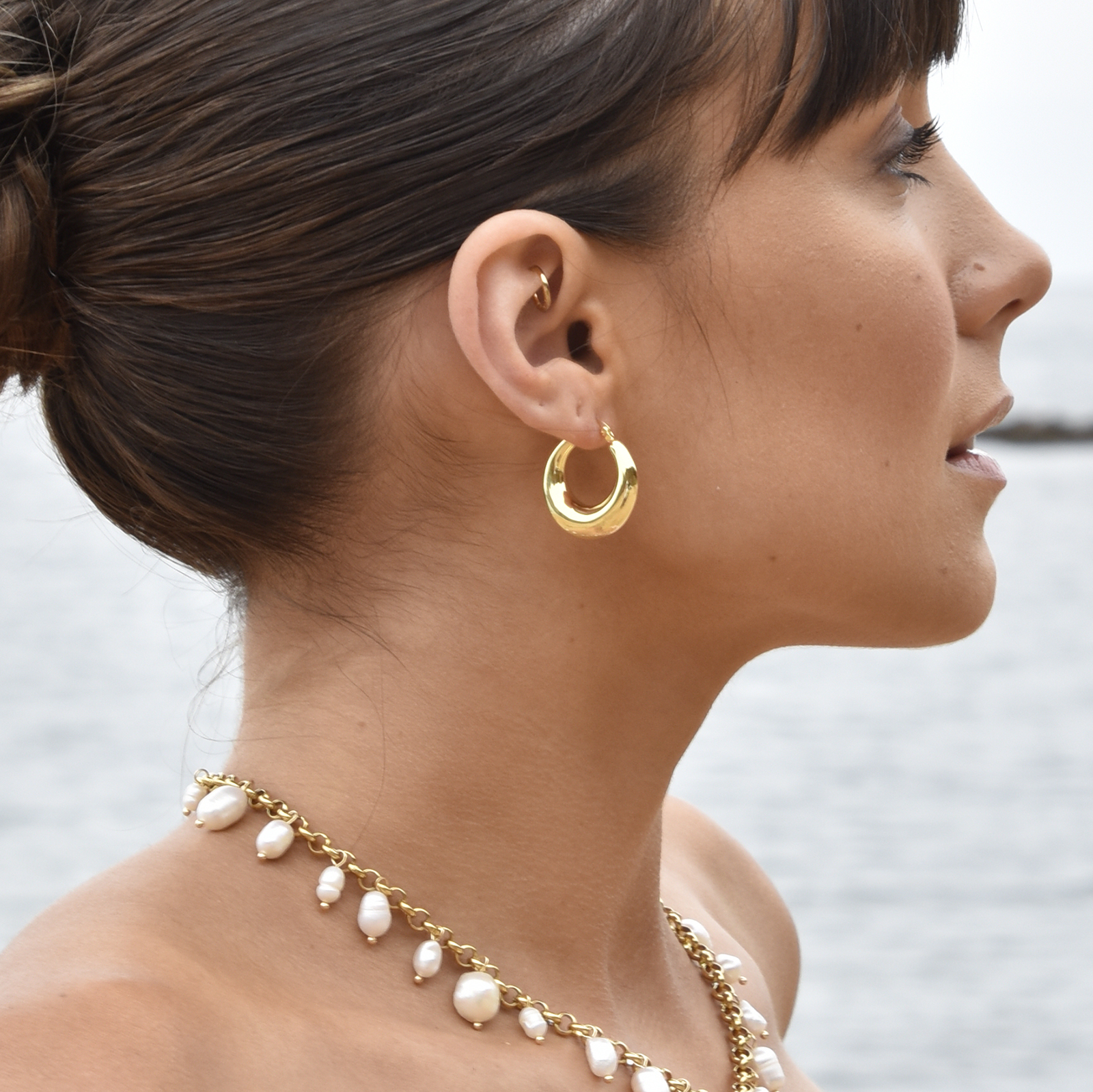 Chic, classic, and versatile for styling. Introducing Avalynn Classic Hoop Earrings (Gold) - an all-time classy gold hoop earring style that never falls out of trend. This design features gold hoops that are wider at the bottom and taper towards the top. The earrings are made of solid sterling silver with 18k high quality gold plating for hypoallergenic and enduring wear. The earrings are hollow inside and comfortable for wearing long hours. A ‘can’t-go-wrong’ ear love for all personal styles. Perfect for modern, smart casual, earring layering, casual, everyday styles and more. Hypoallergenic, nickel, cadmium and lead free.