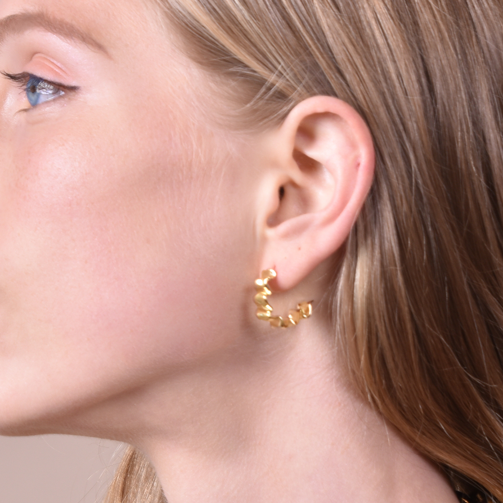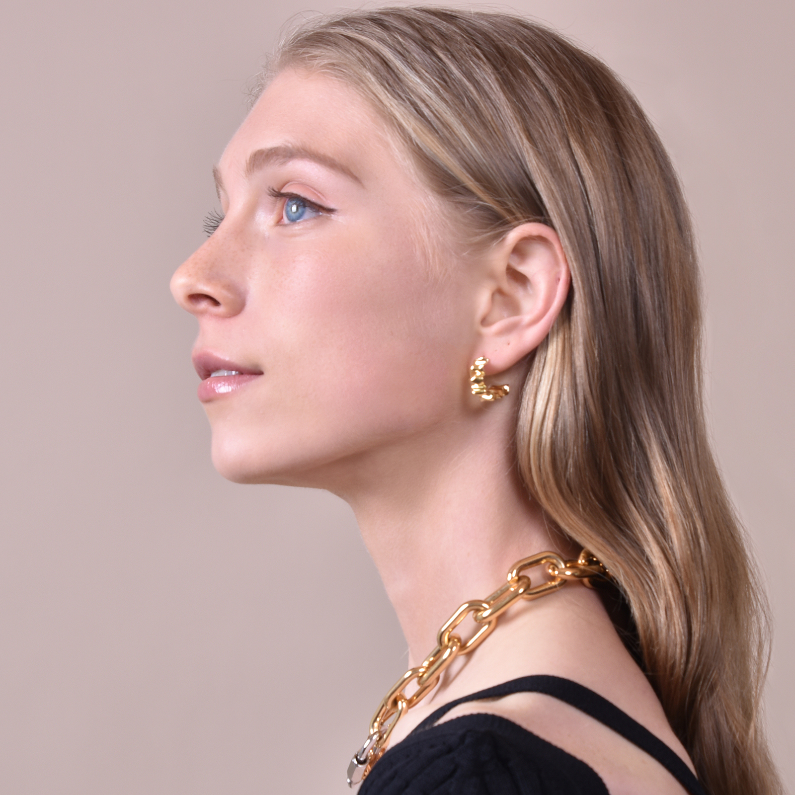 Artsy flamboyant with a modern edge. Introducing Avani Art Deco Wavy Hoop Earrrings (Gold Vermeil) - one of the Culturesse Artsy Lining Collection expressing modern art elements through metal sculpture. This design features wavy C hoops made in solid sterling silver with 2.5 microns of 18K gold plating (to Gold Vermeil Jewellery Standards). The earrings are smoothly polished with a shiny surface. A contemporary art deco style ear love perfect for modern, creative, and lovers of uniqueness and quality. Hypoallergenic, nickel, cadmium and lead free.