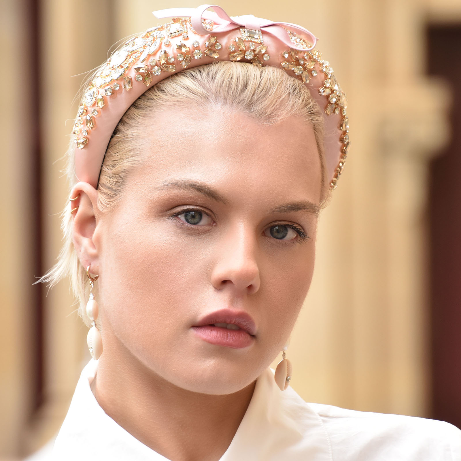 Magazine cover style high fashion luxury headband (Pink) Length 17.5cm, Width 15cm, Weight 50g Also available in black.