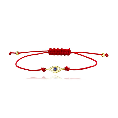 May this evil eye protect you as you go about your day. May happiness surround you and stay out of harm’s way. Introducing Aysun Gold Evil Eye Bracelet (Red String) - a versatile and gender-neutral piece featuring a gold evil eye charm adorned with a blue Austrian zircon. The evil eye charm is made in sterling silver with 18ct gold plating for enduring and hypoallergenic everyday wear. Perfect for layering and all personal styles, and especially for evil eye lovers. This bracelet comes with an adjustable string knot for a preferred personal fit.