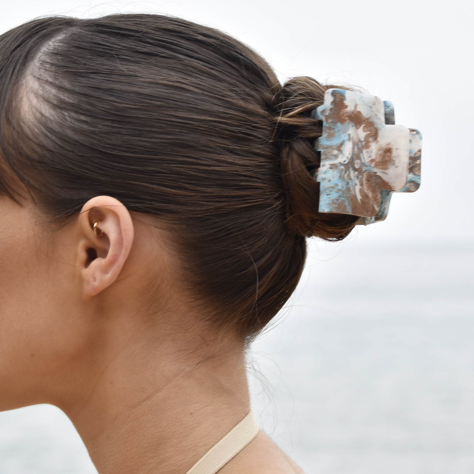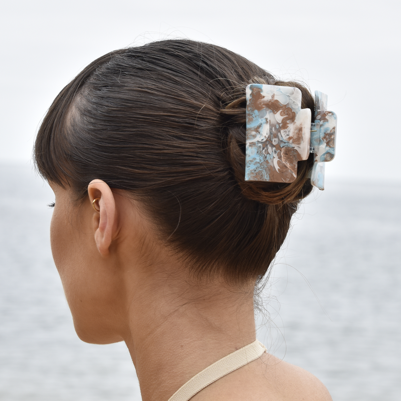 A trendy, bright and handy hair accessory that makes everyday styling simple, effortless and vibrant. With a solid grab of hair, this medium sized artsy hair claw is easy to clip on and off. Suitable for girls and women of all ages.
