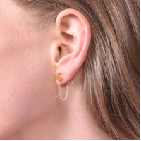 Unique, creative, and ADORABLE. Introducing Beau Gold Filled Dainty Bulldog Earrings - a contemporary style fine jewellery piece made of quality and style. This design features French bulldog shaped earrings with chains attached, adding a little quirkiness and playfulness to the pieces. The earrings are made of solid sterling silver with 18k filled gold (for the bulldog features, the chains are 18k gold plated) for durable and hypoallergenic wear. An extraordinary statement that is not defined by size. Perfect for modern, artsy, chic, punk, minimalist, earring-layering, earring mismatching, one earring style, smart casual, casual and everyday styles. Also suitable for kids, teens, and for unisex wear. Hypoallergenic, nickel, cadmium and lead free.