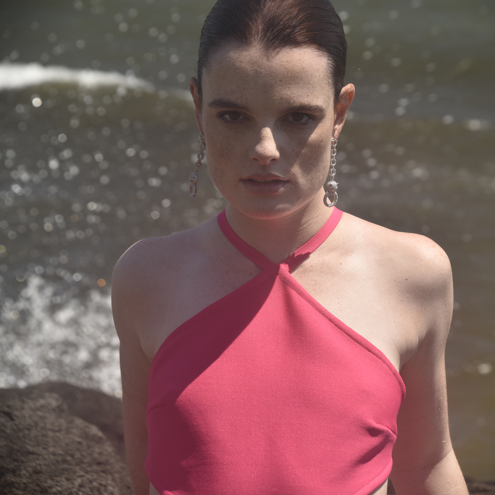 Be fearlessly yourself. Introducing Bengali Luxury Leopard Ring Earrings - a light luxury style shimmering statement with attention to the fine details. This design features a pave leopard head holding a diamante-encrusted hoop suspended by four diamante-encrusted hexagons. The earrings are made in sterling silver with the earring surface fully adorned with inlaid Austrian diamantes. Each earring is 7.6g in weight. Perfect for modern, retro, high fashion, glamour, fashion event, runway styling, bold, chic, smart casual styles and more.