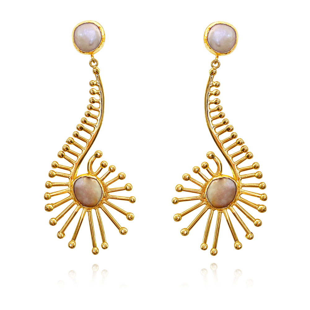 | Made from: | Solid Sterling Silver Earring PostsNatural Mediterranean Mother of Pearls24K Pure Gold PlatingEnvironmentally Friendly Brass |