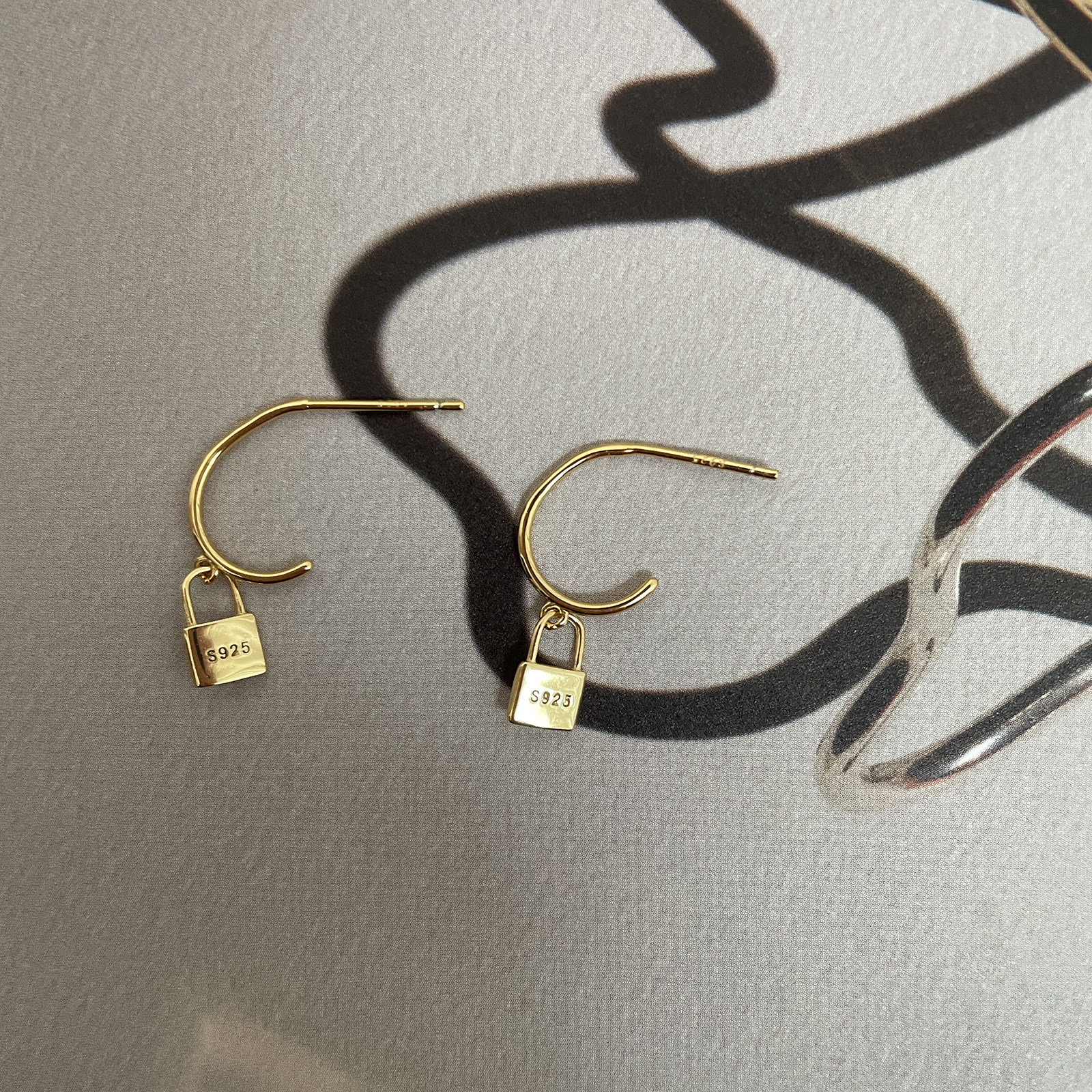 Modern fine earring with an attitude. Introducing Billie Minimalist Padlock Earrings - a minimalist style ear love for women and girls of all ages, plus unisex wear. This design features delicate padlock drops attached to C hoops. The earrings are made of solid sterling silver for comfortable and hypoallergenic wear. They are also lightweight and suitable for wearing all day. Perfect for contemporary, chic, simple, punk, mismatching, earring layering, casual, everyday styles and more. Hypoallergenic, nickel, cadmium and lead free.