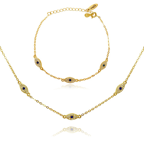This Gift Set includes: Birdie Evil Eye Necklace (Gold) + Birdie Evil Eye Bracelet (Gold)