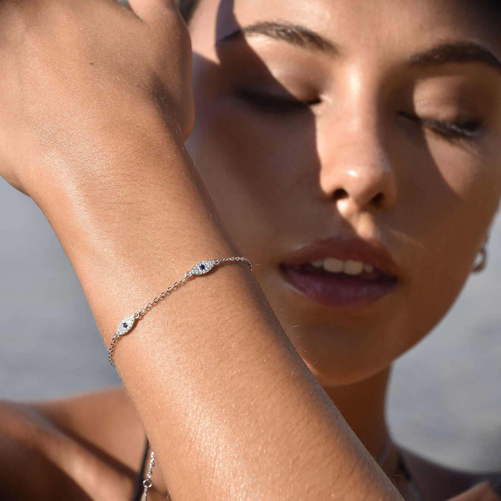 Chic, refined and versatile for styling. Introducing Birdie Evil Eye Bracelet (Silver) - a fine style evil eye wrist love perfect for layering and everyday wear. This design features 3 evil eye pendants embellished with Austrian clear and blue zirconias, exuding fine sparkles especially in the sunlight. This bracelet is made in sterling silver for hypoallergenic wear. This bracelet is 20.5cm long including a 4.3cm long adjustable link, allowing it to be worn in your preferred length. Perfect for modern, bohemian, coastal, chic, layering, smart causal, casual and everyday styles. Hypoallergenic, nickel, lead, and cadmium free.